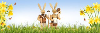 Osterhasenpaar Gärtner und Gärtnerin, natur, 30 cm