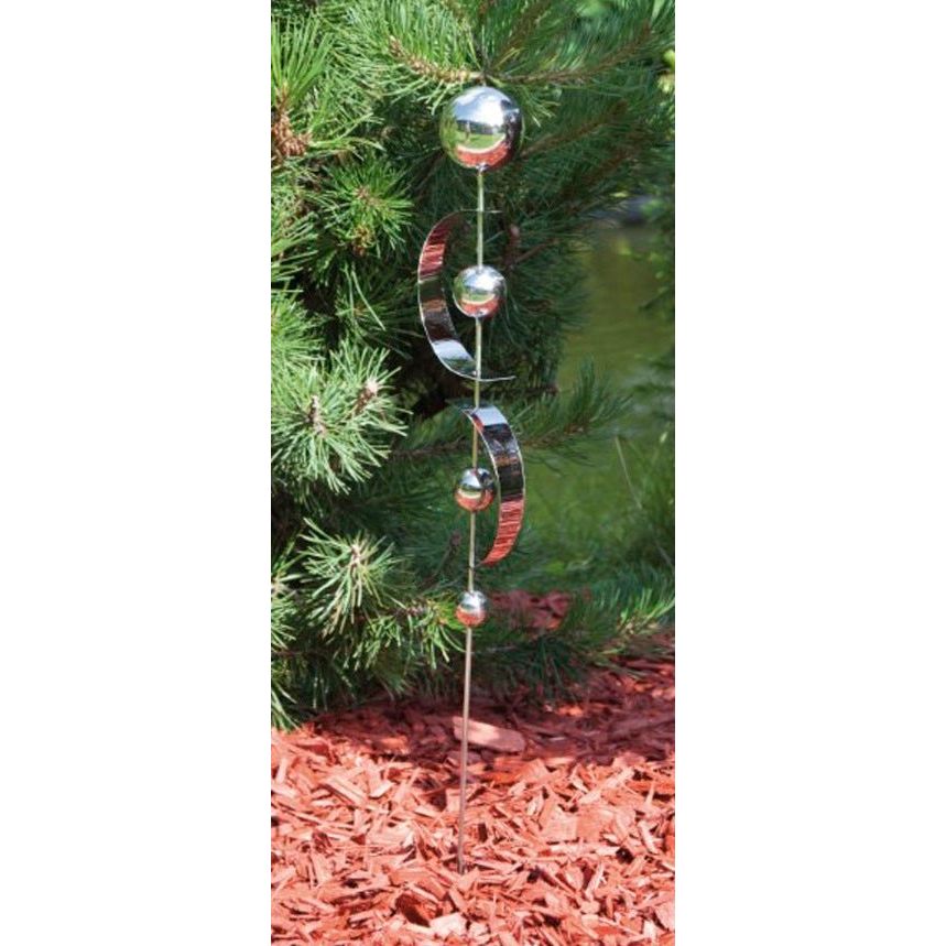 Romantisch und wunderschön: Verleihen Sie Balkon, Terrasse und Garten einen unverwechselbaren Charme mit diesem Gartenstecker aus rostfreiem Edelstahl. Vier Kugeln bilden eine scheinbar schwebende Reihe, die farblich und förmlich einen edlen Kontrast zur Bepflanzung in ihrem Garten bildet. Zwei Wellen aus Metall schaffen eine optische Einheit bei diesem Design-Gartenstecker. Außerdem spiegeln sich in den Kugeln die Sonnenstrahlen, das sorgt für Glitzereffekte. Der Erdspieß aus Metall trägt die Dekoration sicher und standfest, dank der zweiarmigen Verankerung am Ende. Der Erdspieß lässt sich einfach in den Boden stecken.