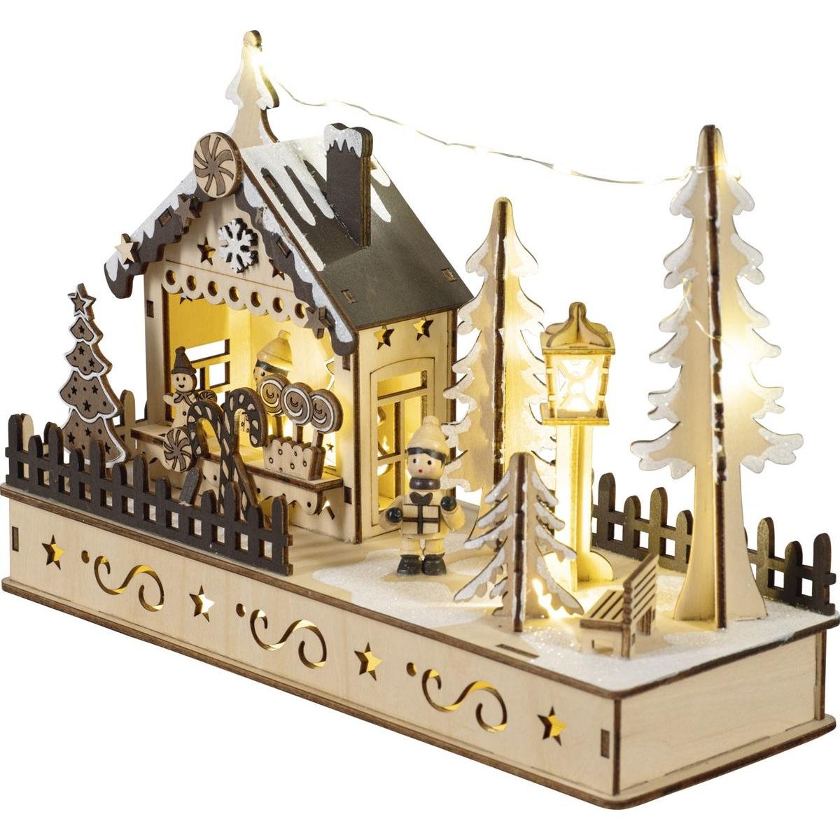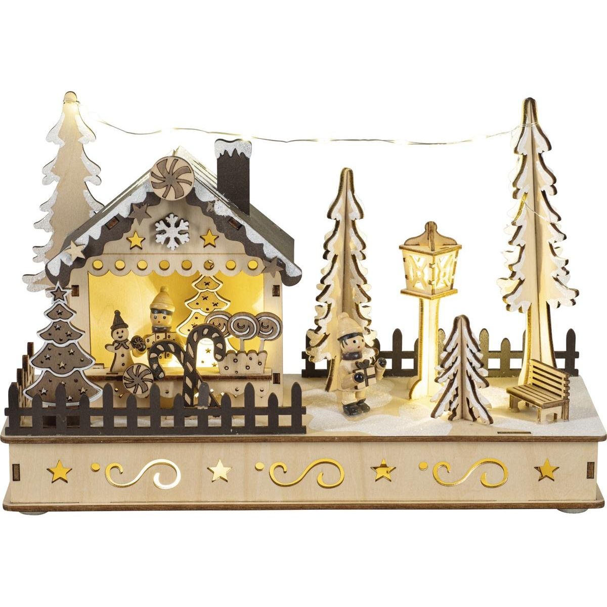 LED Diorama "Weihnachtsmarkthütte" mit Timer, natur, 18 cm