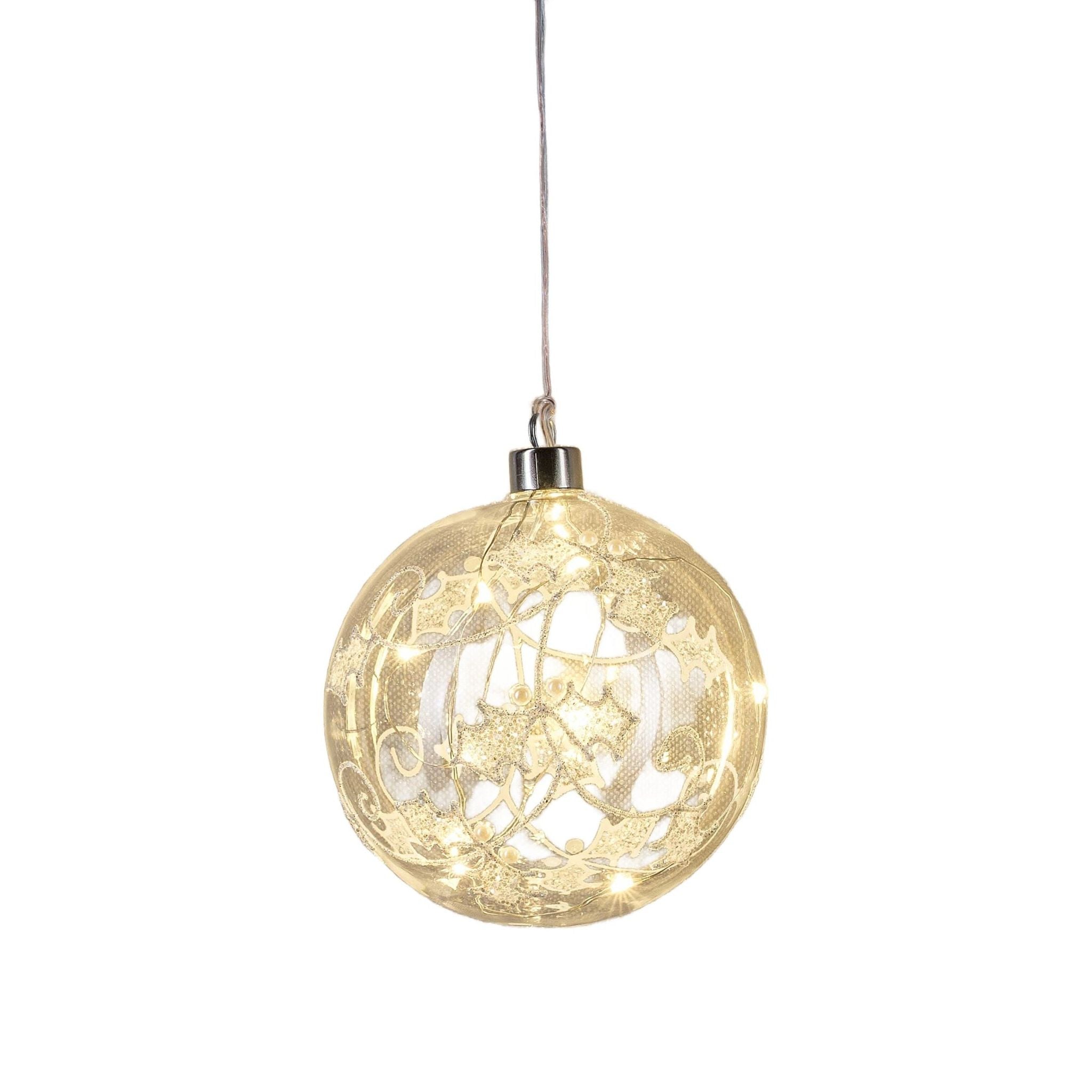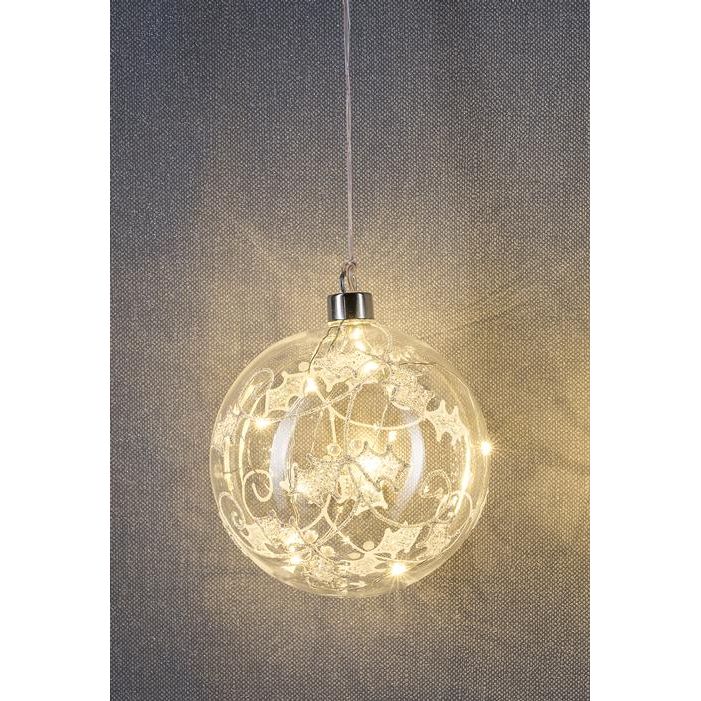 Fügen Sie ein wenig Glanz in Ihr Zuhause mit dieser Glaskugel mit LED-beleuchtetem Kristall/Frost-Dekor. Diese aufhängende Dekoration ist perfekt für die Weihnachtszeit und zieht mit ihrem funkelnden Licht alle Blicke auf sich. Der Kristall ist mit einem LED-Licht beleuchtet, das in verschiedenen Farben leuchten kann, und sorgt so für eine zauberhafte Atmosphäre.