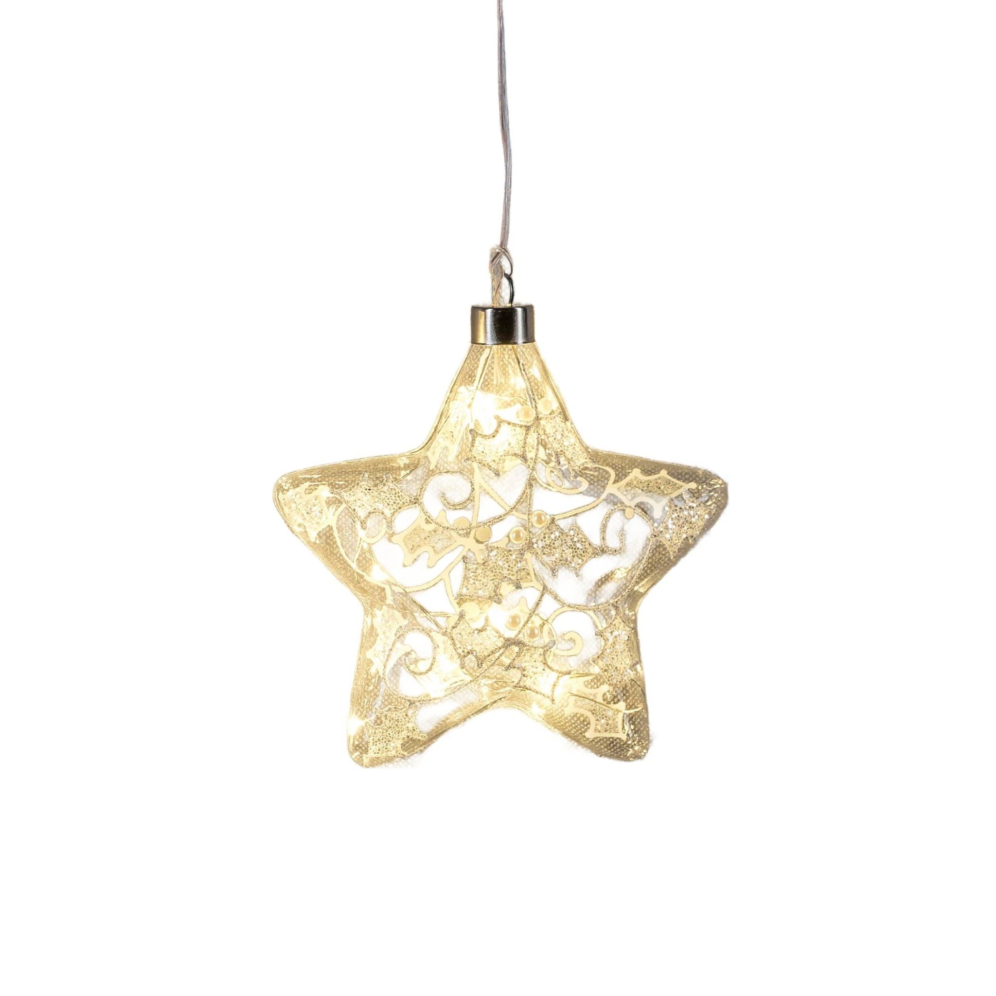 Dieser LED-Glasstern ist nicht nur funkelnd und dekorativ, sondern auch ein echter Hingucker in Ihrer Weihnachtsdekoration. Mit einem Durchmesser von 15 cm zieht er alle Blicke auf sich. Der Stern hat einen Aufhänger mit integriertem Batteriefach und einem Timer, sodass Sie ihn bequem aufhängen und einstellen können.