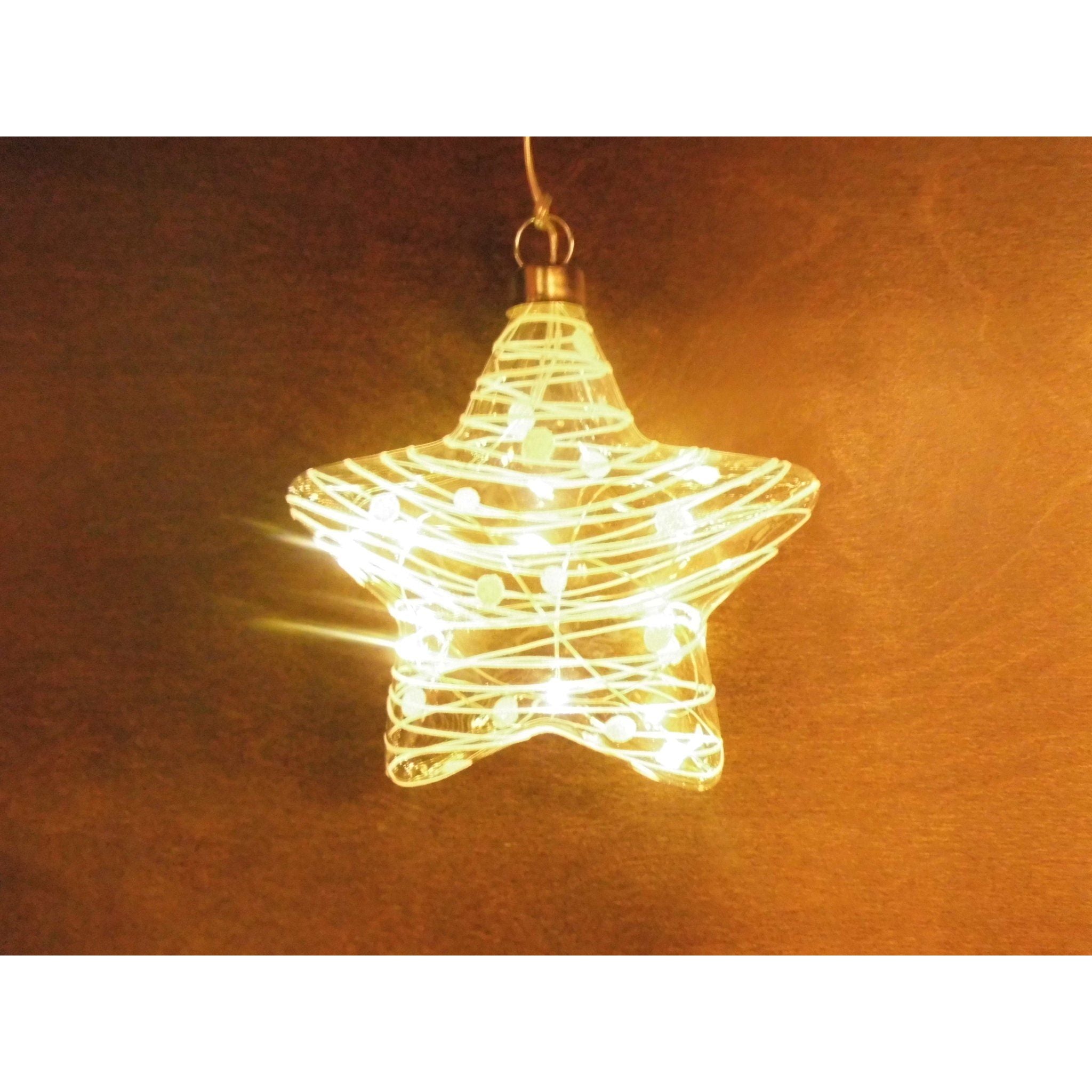 Dieser kleine LED-Stern aus Glas mit Kristall/Weiß Dekor, kann Ihre Weihnachtsdekoration ergänzen. Er verfügt über einen silberfarbenen Aufhänger, der gleichzeitig als Batteriefach dient. Zudem verfügt der Mond über eine integrierte Timerfunktion.