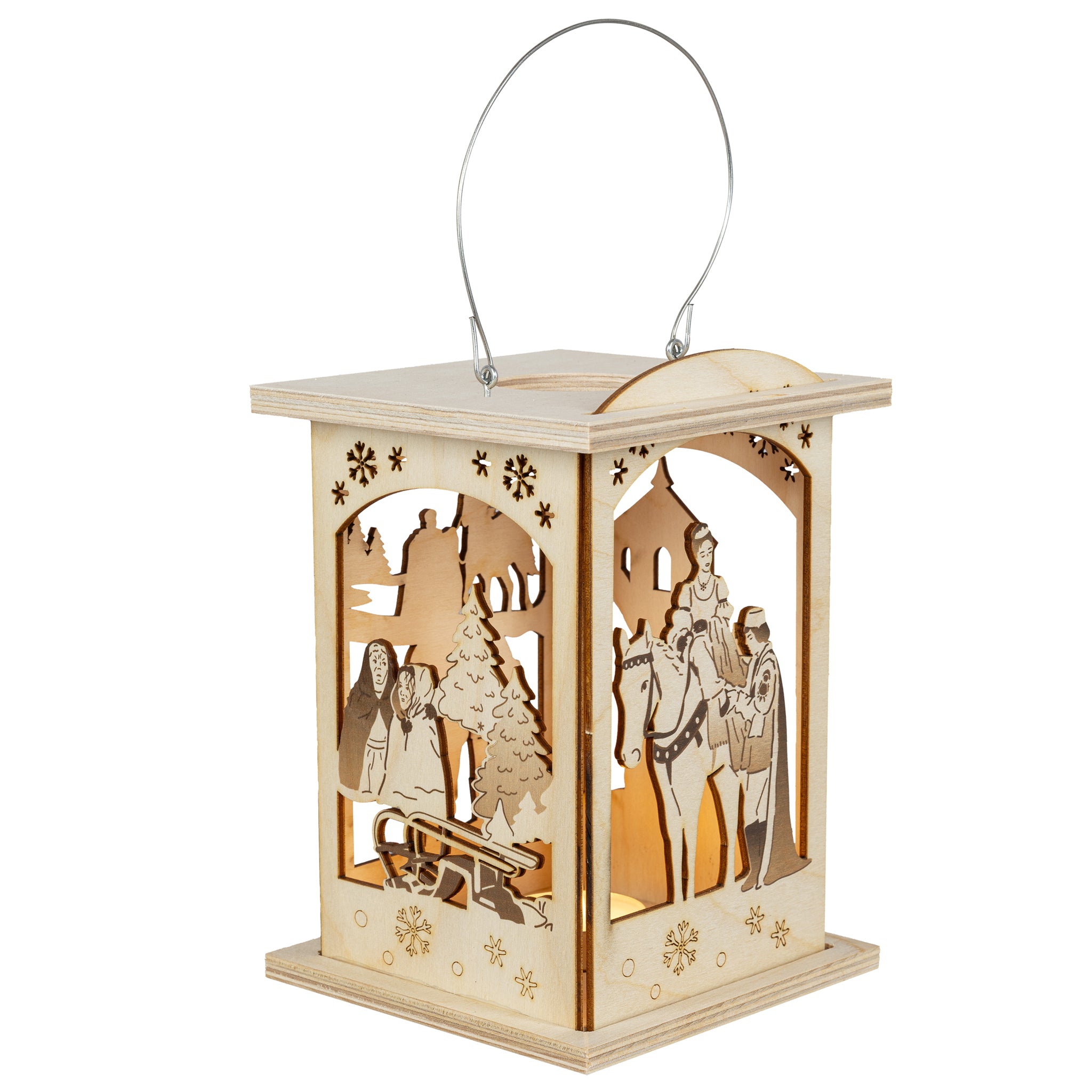 Die Laterne "Drei Haselnüsse für Aschenbrödel®" ist ein wahres Multitalent und ein Muss für jeden Fan des Märchens. Diese wunderschöne Laterne aus Holz bietet eine Doppelfunktion: Sie kann entweder mit einem Teelicht beleuchtet werden oder dank des LED-Stripes für stimmungsvolles Licht sorgen. Der LED-Stripe ist batteriebetrieben und verfügt über einen praktischen Timer, der das Licht automatisch ein- und ausschaltet.