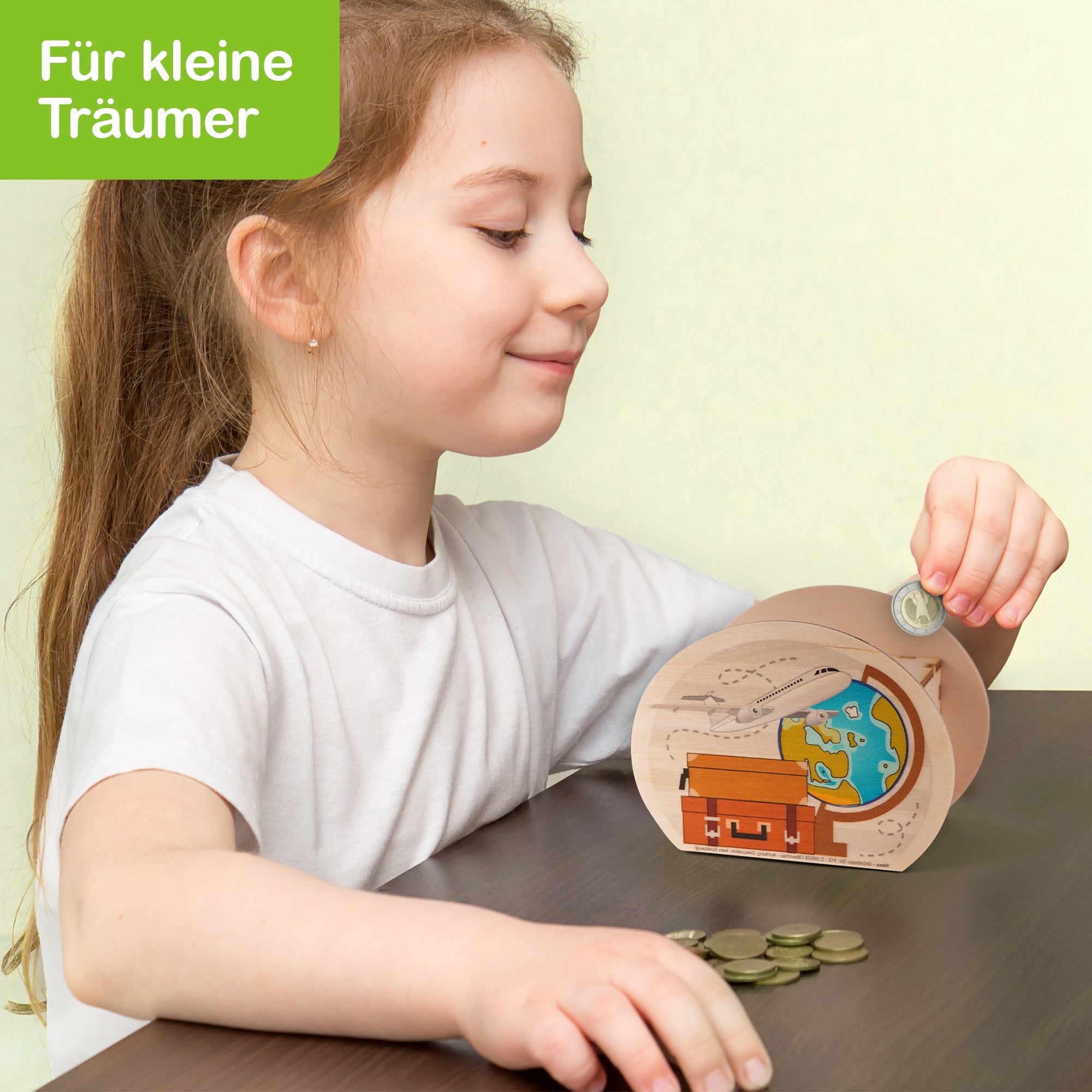 Die Spardose "Reisekasse" aus Holz ist die ideale Wahl für Eltern, die ihren Kindern das Sparen auf spielerische Weise näherbringen möchten. Mit ihrem farbenfrohen Design und dem Thema Urlaub inspiriert sie kleine und große Reisefans gleichermaßen. Diese Spardose ist nicht nur ein praktisches Utensil zum Geldsparen, sondern auch eine wunderschöne Dekoration für jedes Zuhause.