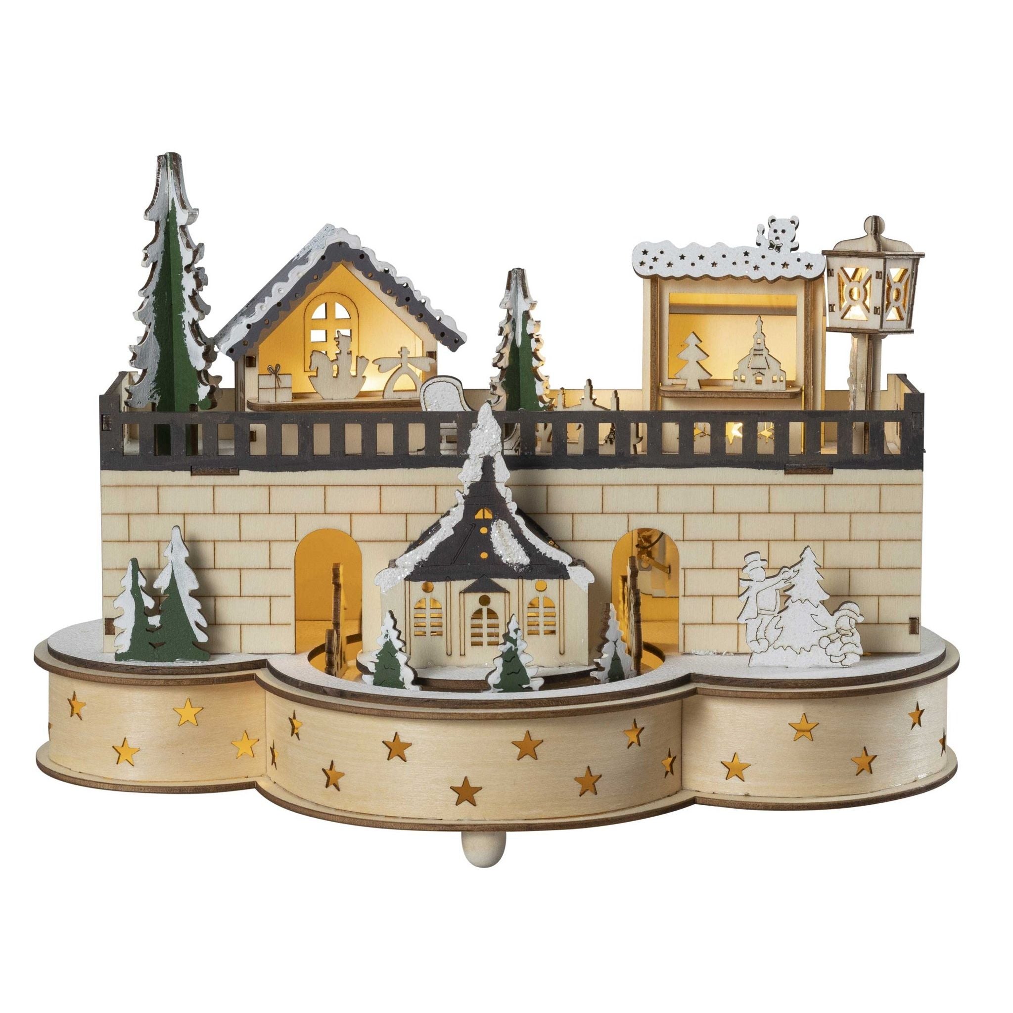 LED Weihnachtsdorf "Seiffen" mit beweglichen Figuren, 30 cm
