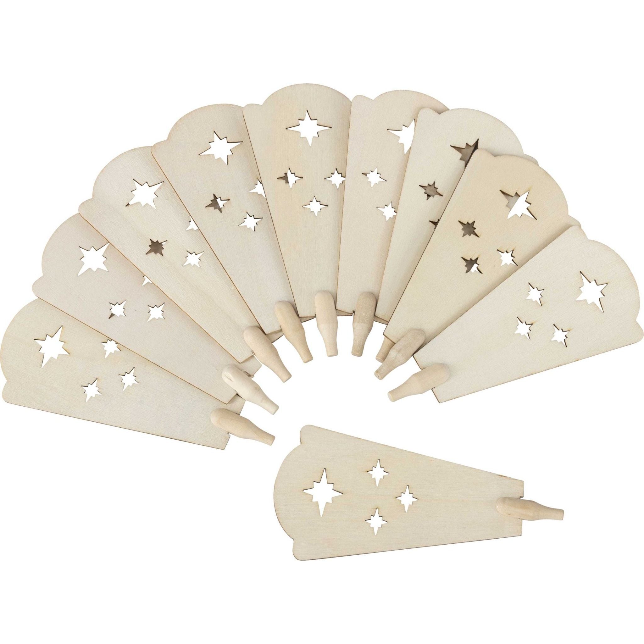 Pyramidenflügel mit Sternen, 10er Set, natur, Ø 24 cm