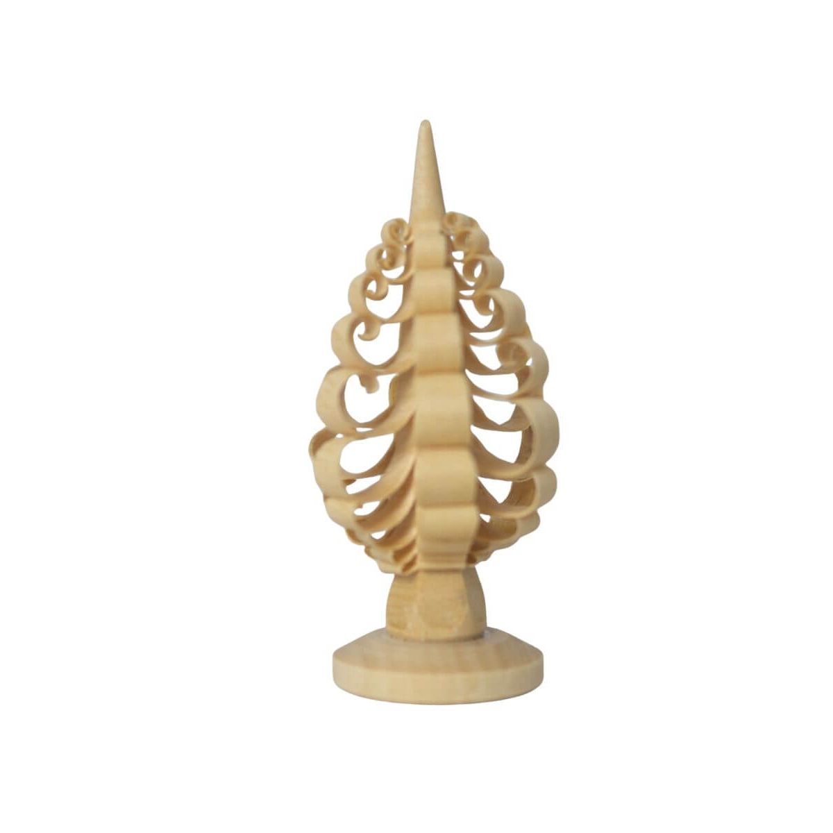 Spanbäume sind eine besonders edle Form der Weihnachtsdekoration und stehen für echte erzgebirgische Handwerkskunst. In aufwendiger Handarbeit gefertigt, bestehen sie aus sechs bis acht kranzförmig angeordneten Reihen, deren feine Locken einzeln gestochen und ausgerichtet werden. Der handgedrechselte Sockel aus hochwertigem Lindenholz verleiht jedem Baum Stabilität und Eleganz. Ob als Einzelstück oder in Kombination mit geschnitzten Rehen – der Spanbaum bringt natürliche Weihnachtsstimmung in jedes Zuhause.