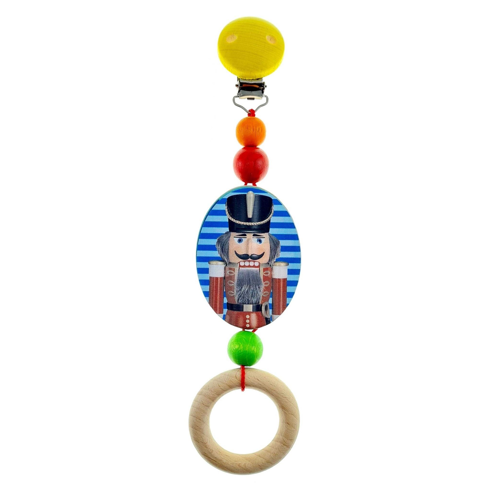 Greifling "Nussknacker" mit Clip: Farbiges Spielzeug aus dem Erzgebirge