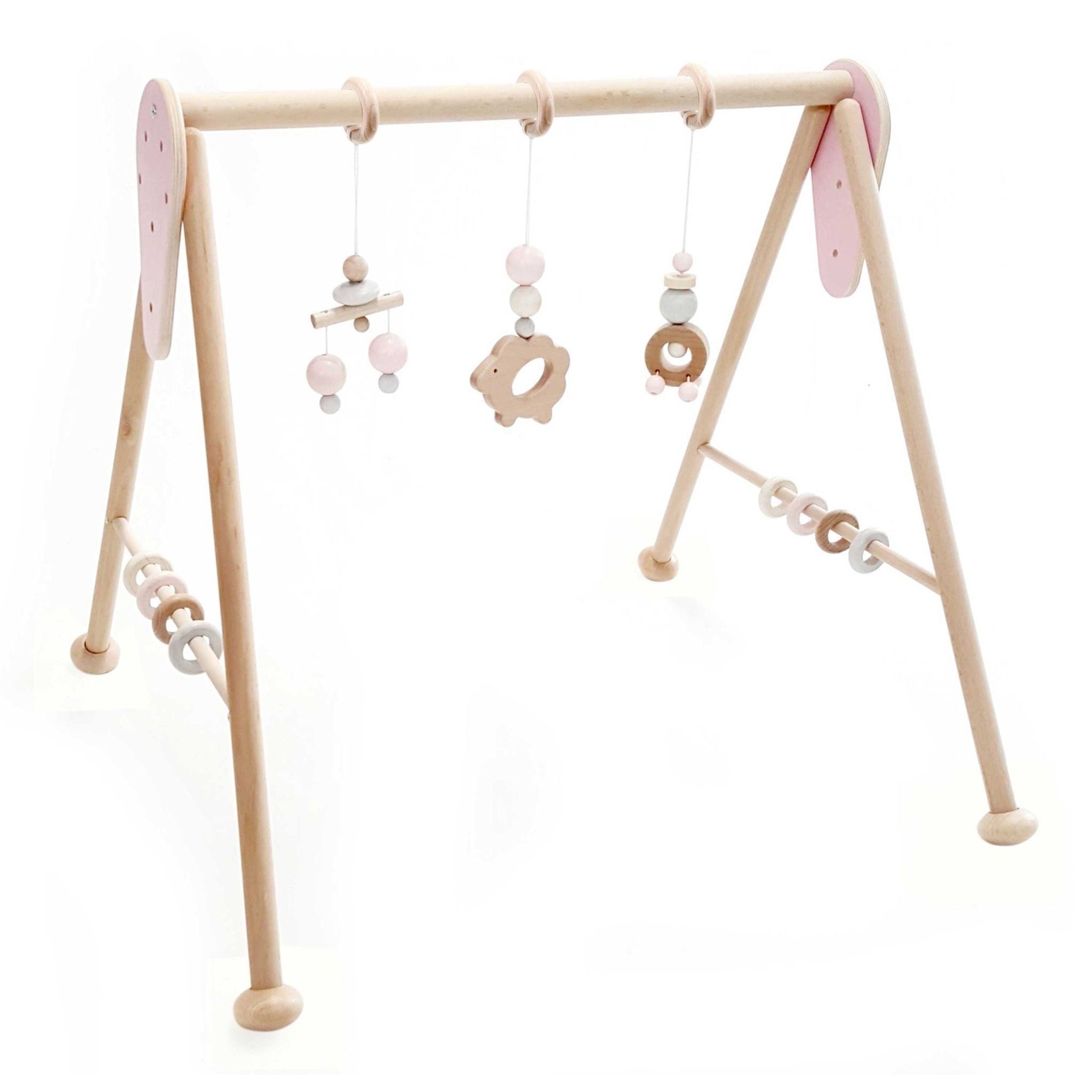 Der Spielbogen "Schäfchen" in zartem Rosa ist ein hochwertiges Holzspielgerät für Babys ab 6 Monaten. Mit seinen sorgfältig gefertigten Greiflingen unterstützt er spielerisch die Entwicklung der sensorischen und motorischen Fähigkeiten. Die Höhe von 55 cm bietet ausreichend Raum für neugierige Bewegungen und fördert das aktive Entdecken.