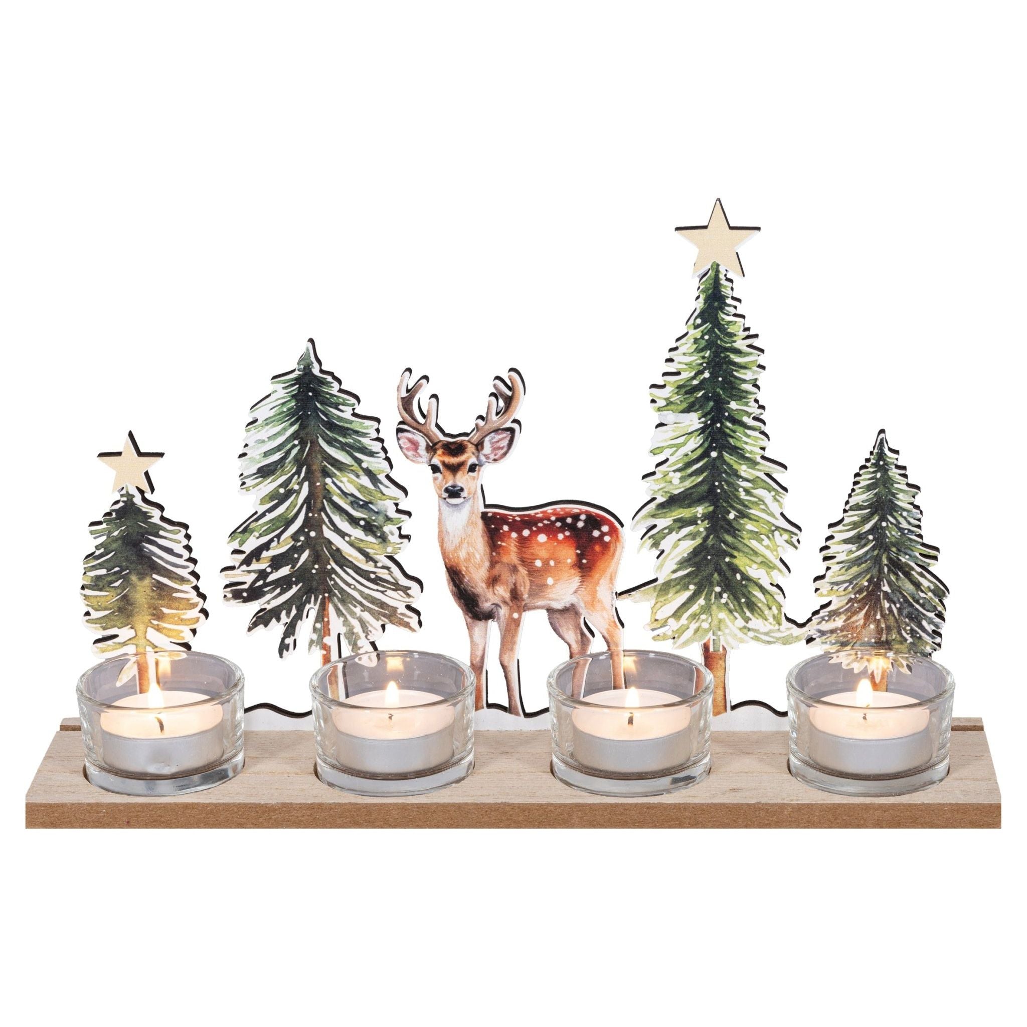 Kerzenhalter "Hirsch im Wald" für 4 Teelichte, 18,5 cm