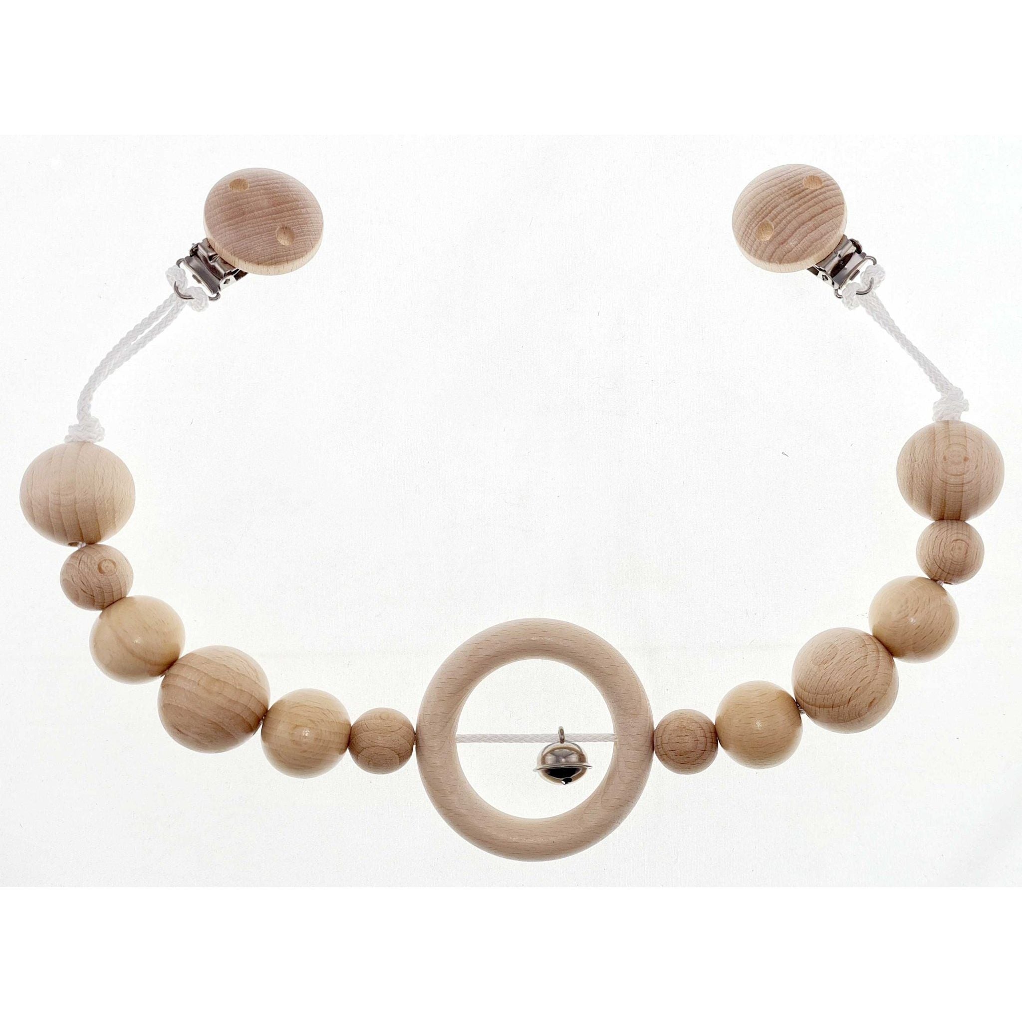 Die Kinderwagenkette „Natur“ mit 2 Clips ist eine liebevoll gestaltete, naturbelassene Kette aus Buchenholzelementen, die sich ideal für Kinderwagen oder Bettchen eignet. Mit einer Länge von 52 cm lässt sie sich bequem an beiden Seiten befestigen und bietet Ihrem Kind stundenlange Unterhaltung. Die Kombination aus hochwertigem Holz, sanften Farben und einem niedlichen Glöckchen sorgt für visuelle und akustische Reize, die die Sinne Ihres Kindes spielerisch fördern.