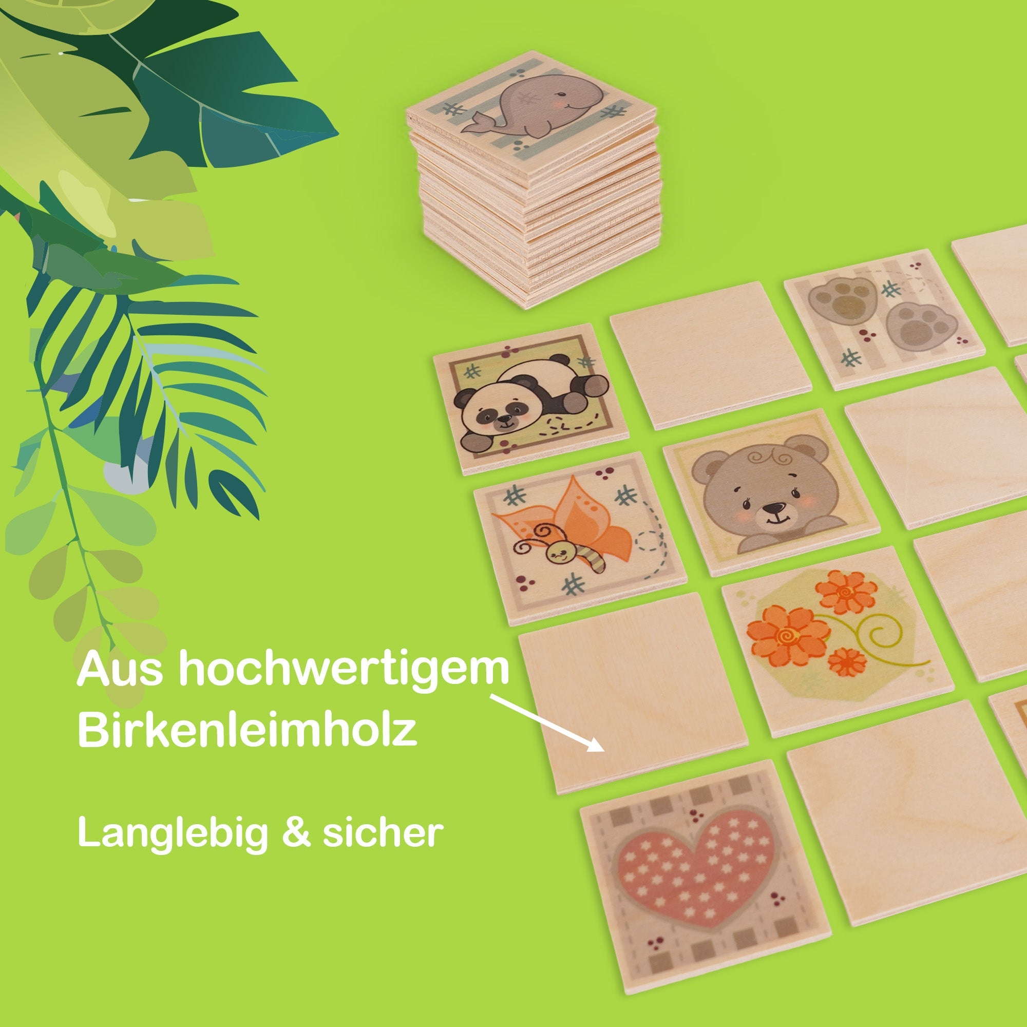 Fördern Sie das Gedächtnis Ihres Kindes mit dem bunten Memo-Spiel aus Holz