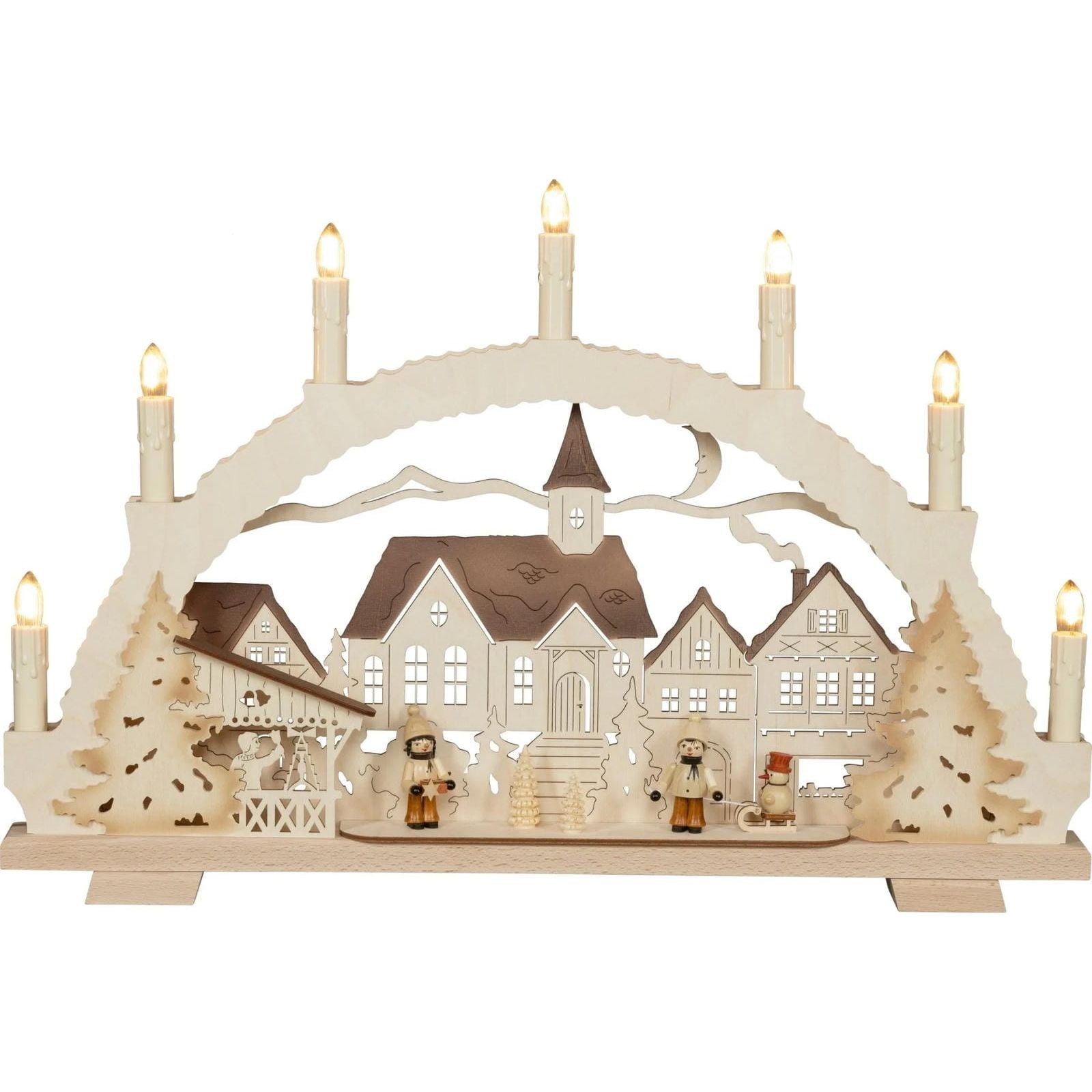 Weihnachtliche Stimmung pur – LED Schwibbogen „Weihnachtsmarktzauber“ 52 cm, farblich abgesetzt aus Holz