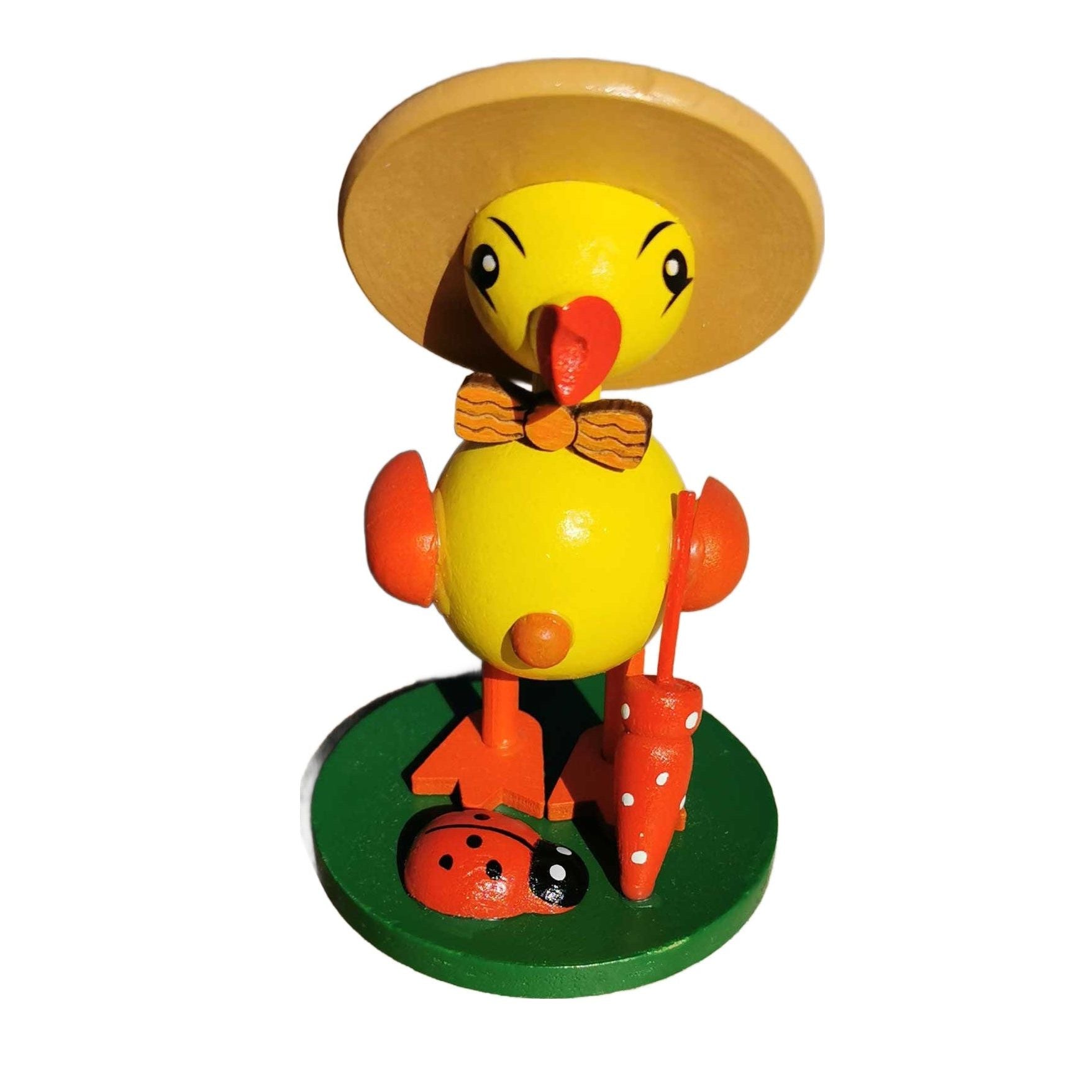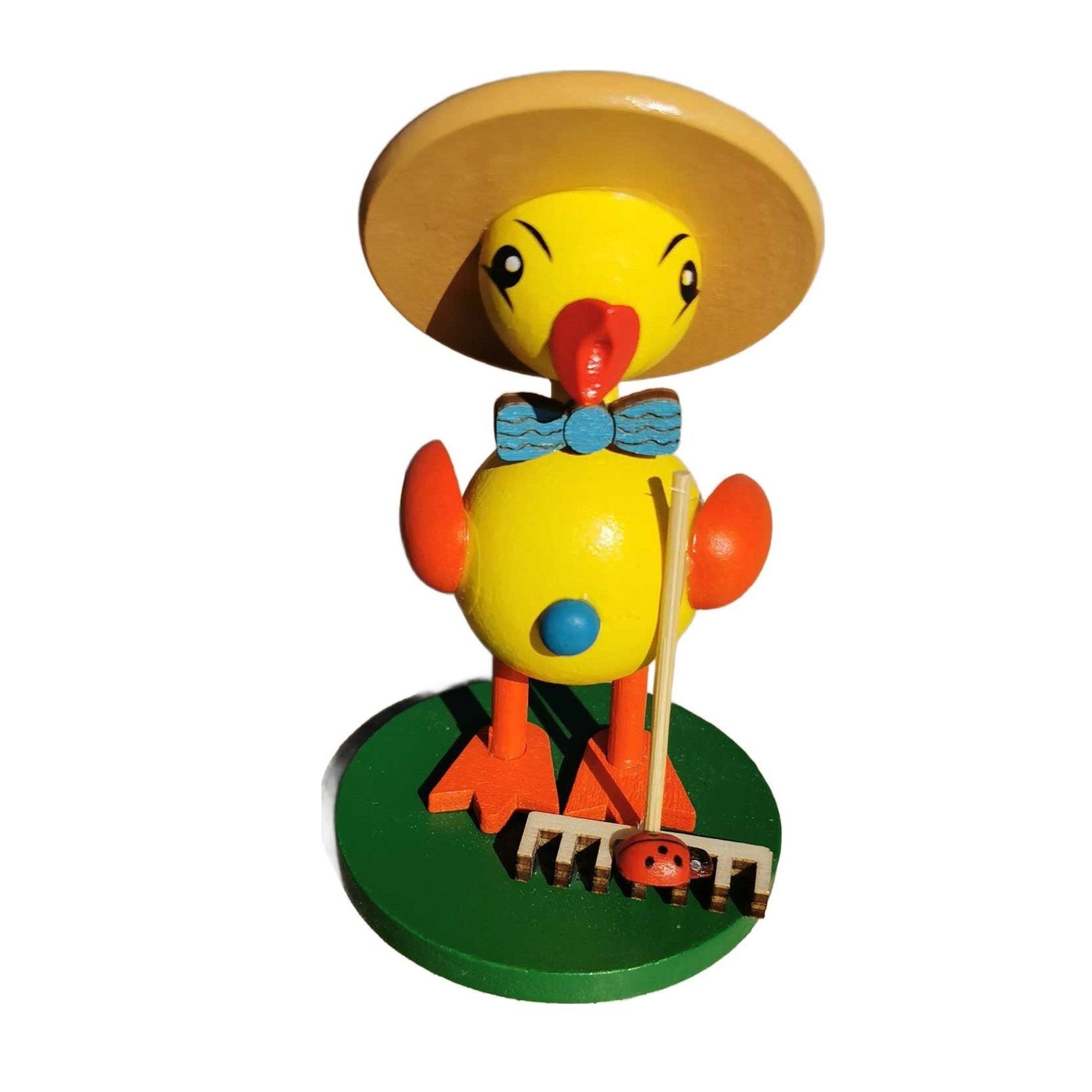 Die niedlichen Entenküken warten nur darauf, Ihre Frühjahrs- und Osterdekoration zu vervollständigen. Die drei Motive zeigen die Küken mit Regenschirm, Gartenrechen oder einem violetten Blümchen, das an ein Veilchen oder Krokus erinnert. Der Hut passt perfekt zum wunderschönen Wetter und schützt die Küken vor der Sonne. Haben Sie schon die Schleife am Hals bemerkt? Die farbig bemalten Küken aus Holz haben sich zu Ostern besonders hübsch gemacht. Mit einer Größe von 5 cm x 5 cm x 9 cm passen sie überall gut hin und ergänzen sich als 3er Set wunderbar.