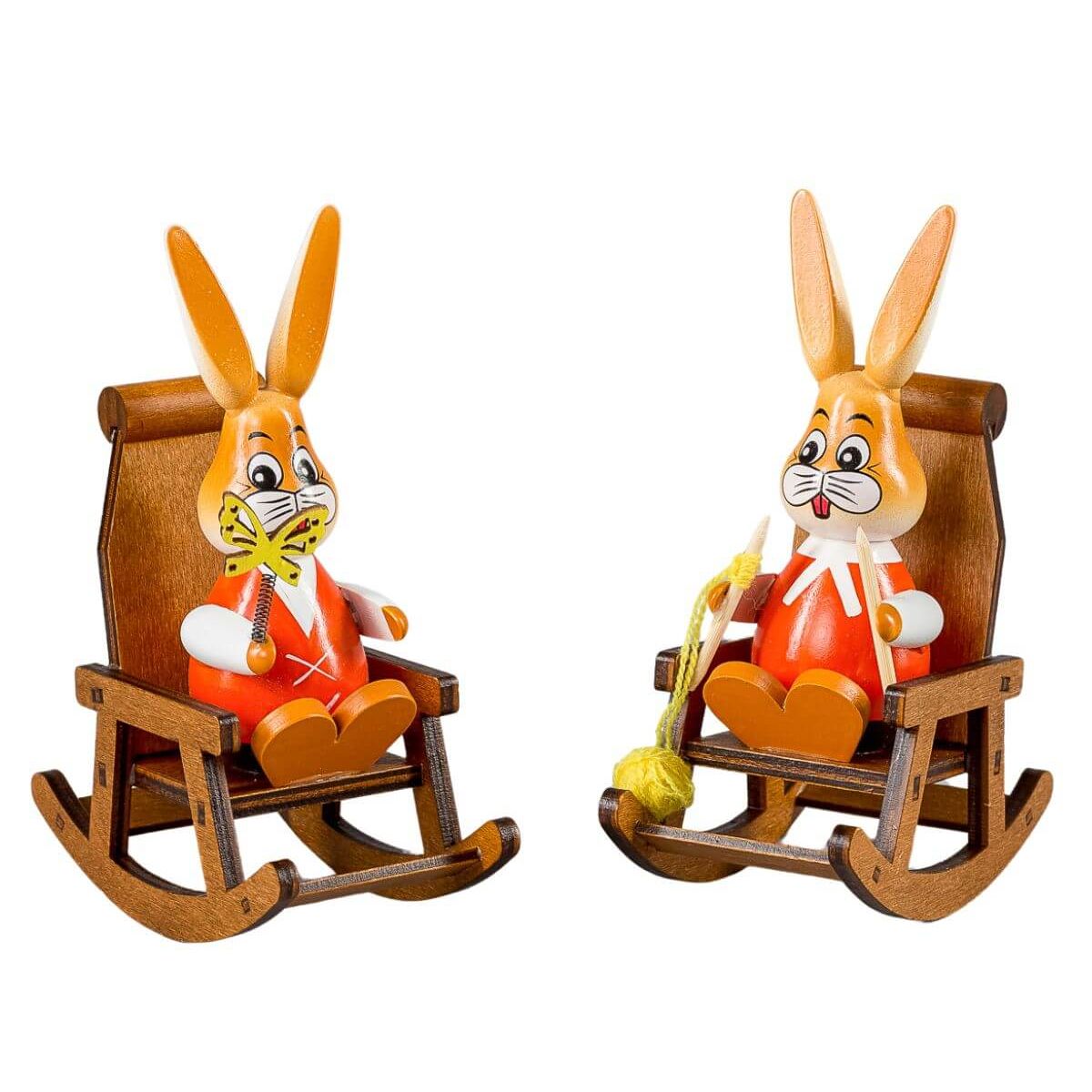 Osterhasenpaar im Schaukelstuhl, 14 cm, farbig