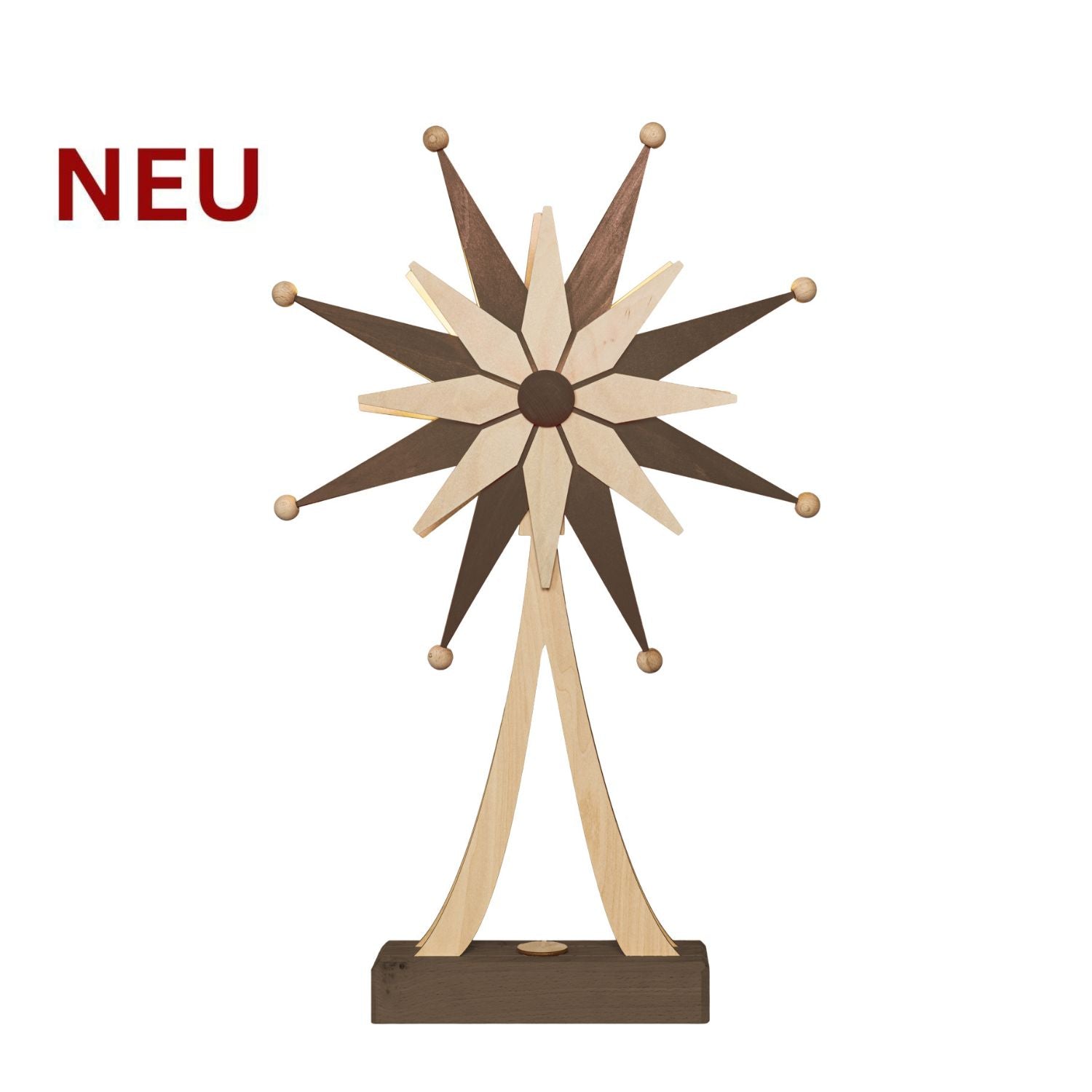 LED Adventsstern mit Holzfuß – Handarbeit aus dem Erzgebirge