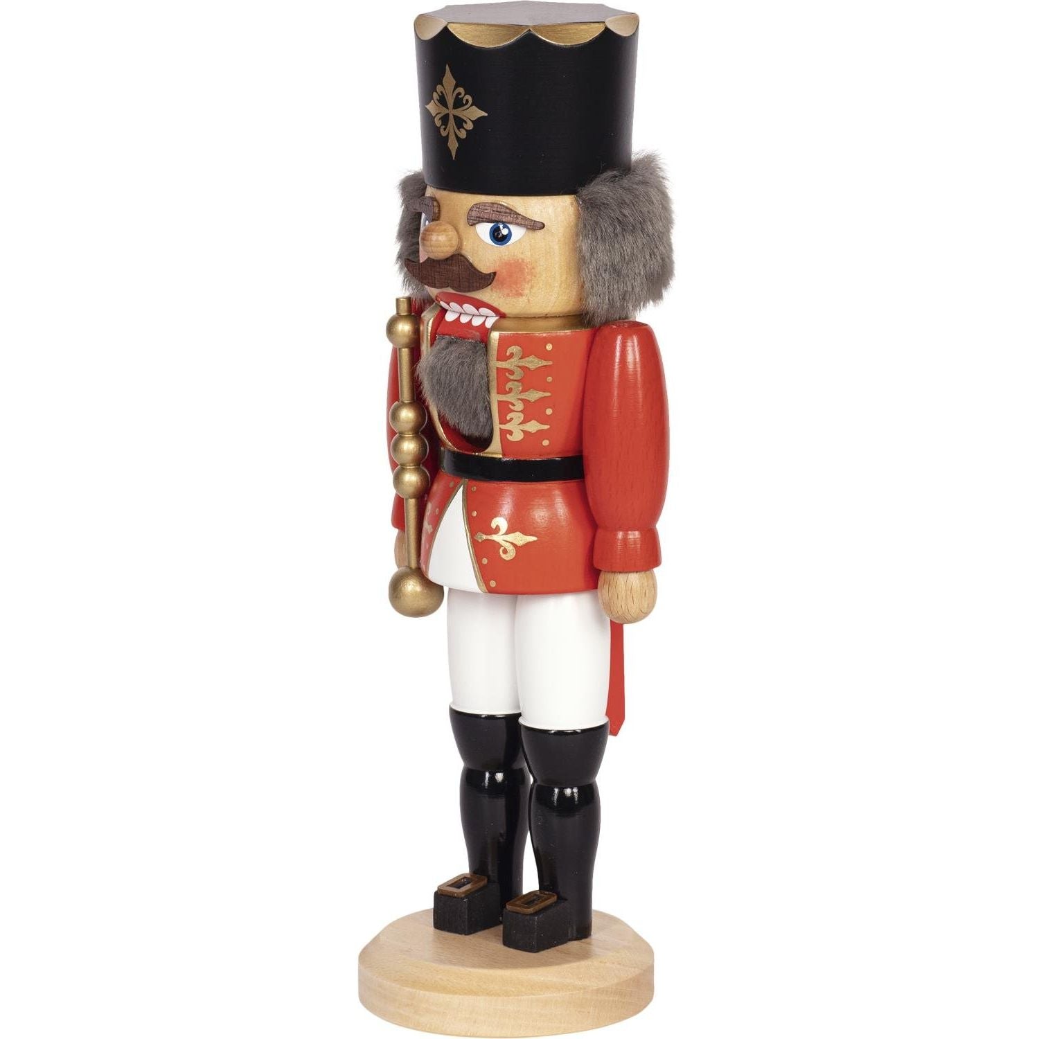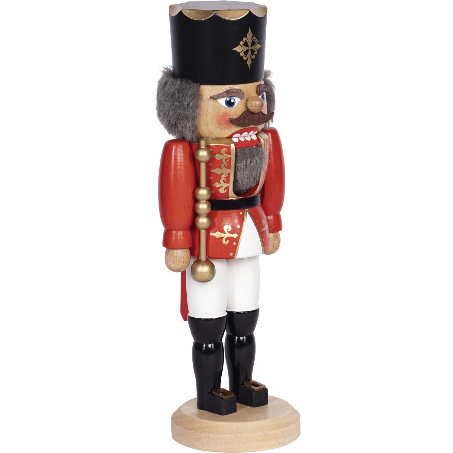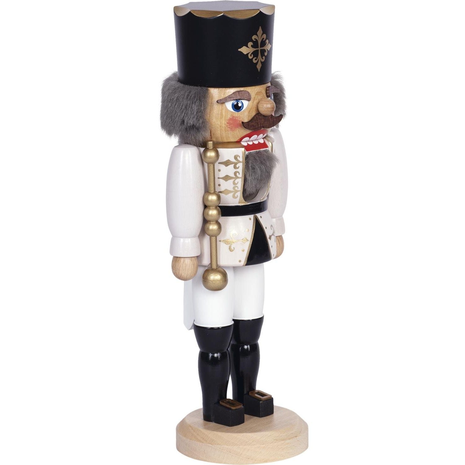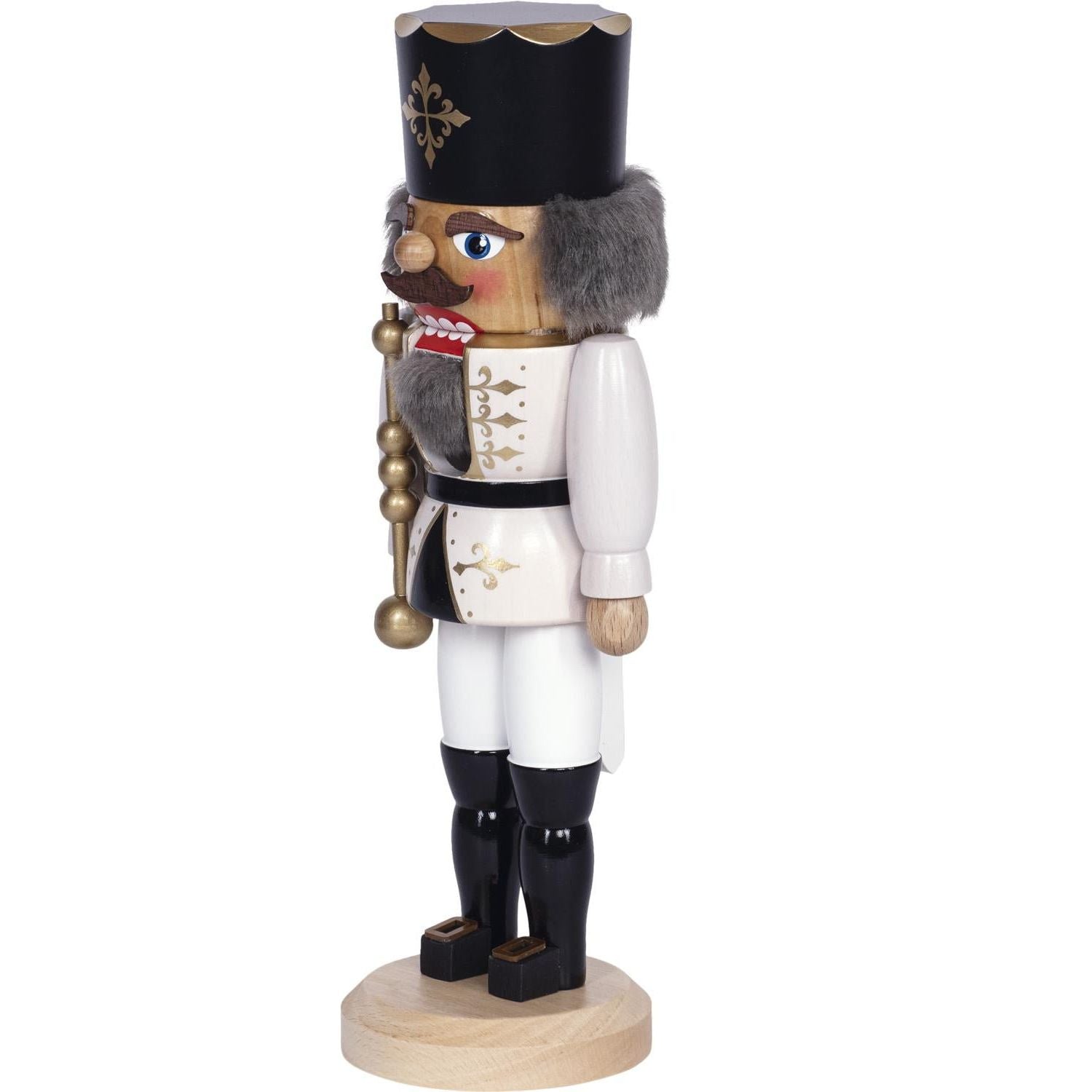 Der Nussknacker "König" gehört zu den klassischen Weihnachtsfiguren. Er ist ein fester Bestandteil für alle Liebhaber des traditionellen deutschen Weihnachtsfestes und bringt majestätischen Glanz in Ihre Weihnachtsdekoration. Hergestellt wird der Nussknacker als Holzkunst aus dem Erzgebirge. Die aus hochwertigem Holz gedrechselten Einzelteile werden lackiert und anschließend zusammengeleimt. Die Verzierungen und das Gesicht der Figur werden sorgfältig aufgebracht. Den Nussknacker bieten wir in den traditionellen Farben weiß, rot und blau an sowie in den Größen 29 und 36 cm. Der Nussknacker eignet sich nicht zum Knacken von Nüssen, sondern dient lediglich als Weihnachtsdekoration.