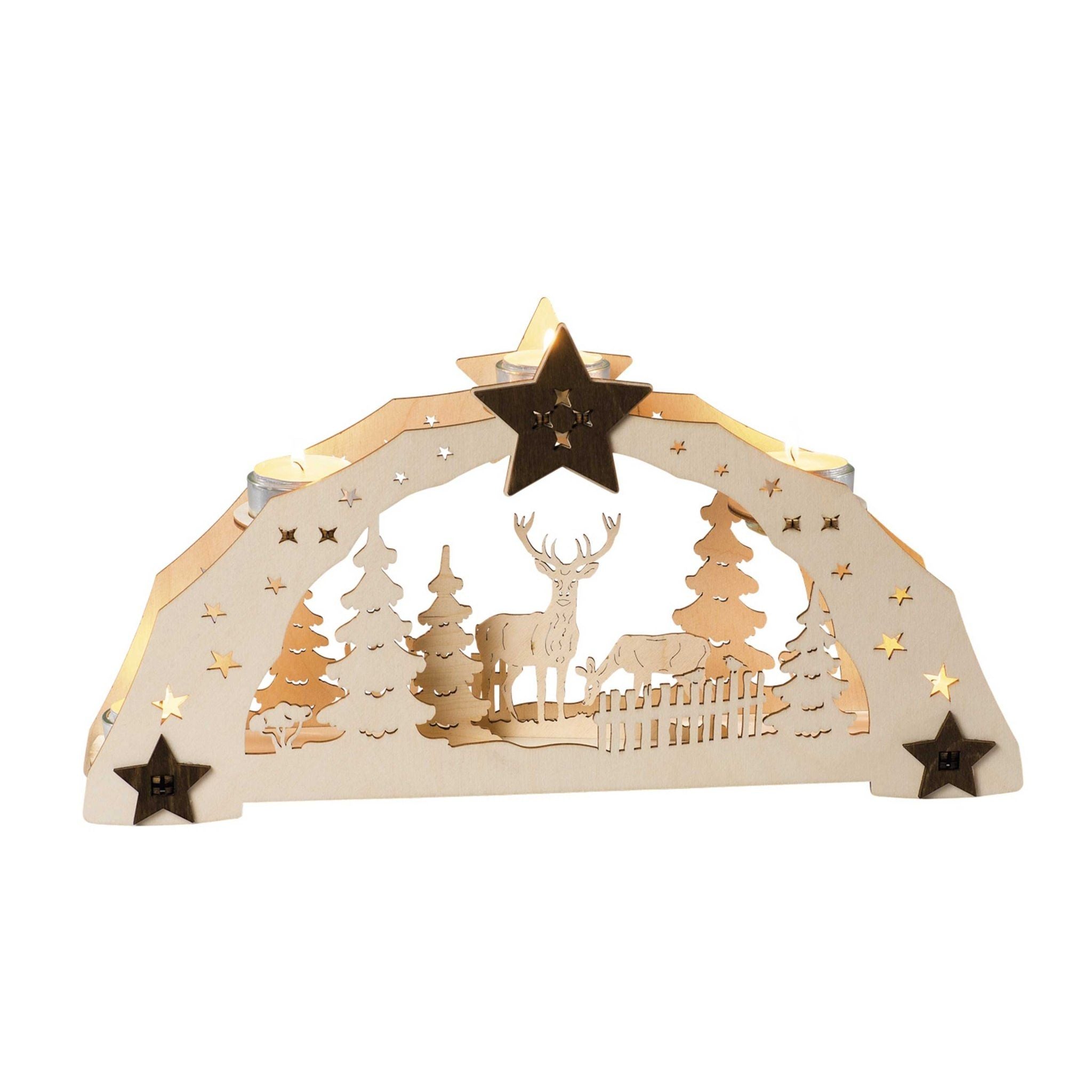 Would you like to do without a lavish and expensive candle arch, but want to achieve an equally glamorous effect ? Then we recommend this tea light holder for five tea lights. The price of the tea light holder, which is manufactured in the Erzgebirge to the highest quality standards, is particularly convincing. Choose from one of 3 motifs: "Santa Claus", "Deer" or "Children":