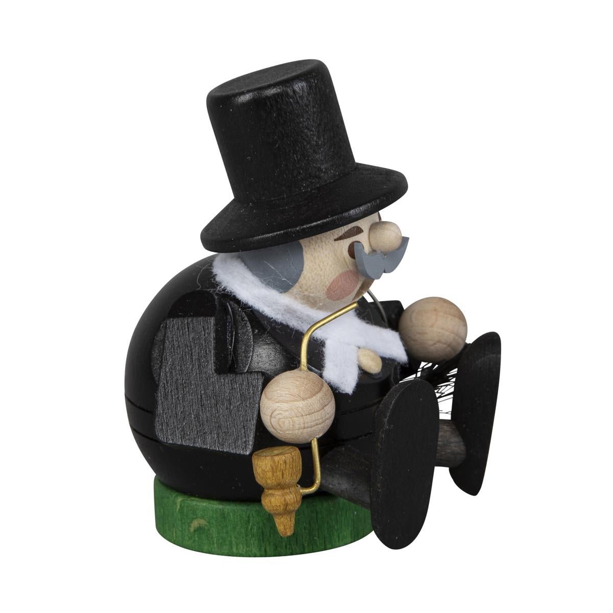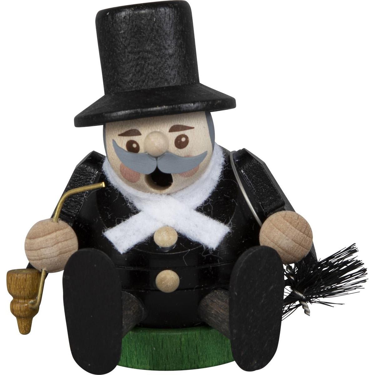 The Mini Incense smoker series are small-format incense figures and are original wooden art from the Erzgebirge. The mini incense smokers from the Erzgebirge are becoming increasingly popular. As a complement to their larger "siblings", they fit perfectly into any Christmas decoration. The smoker is made in an artisan factory in the Erzgebirge. Only selected, high-quality wood is used. You can choose from many professions and some special motifs. Among them you will find the motifs of Santa Claus, forester, a Scotsman, shepherd, captain, the doctor with a doctorate, the classic chimney sweep, the traditional miner, the cook and our special motifs with the Bavarian, toy seller and, last but not least, the gingerbread seller. The incense figures are a real eye-catcher on their own, but there is also a wooden display to put up as an accessory. All 12 figures can be perfectly placed and presented as a complete collection. (When smoking, please only use MINI incense cones with a maximum height of 20 mm. You can also purchase MINI incense cones in our shop.