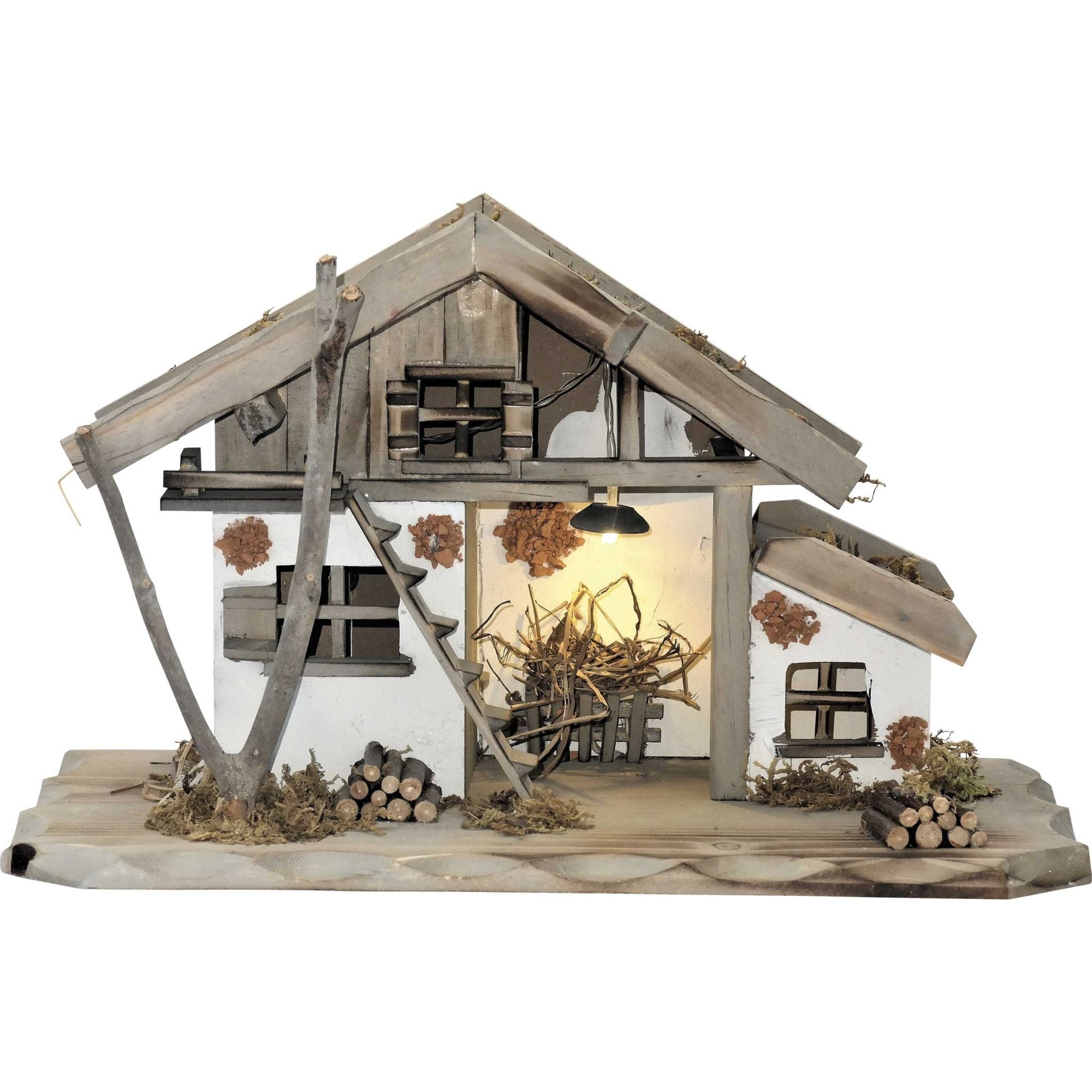 Christmas nativity scene made of real wood with LED lighting. The nativity scene is suitable for figures up to 13 cm. It is powered by batteries and is therefore independent of sockets. The nativity scene is a real highlight for your Christmas.