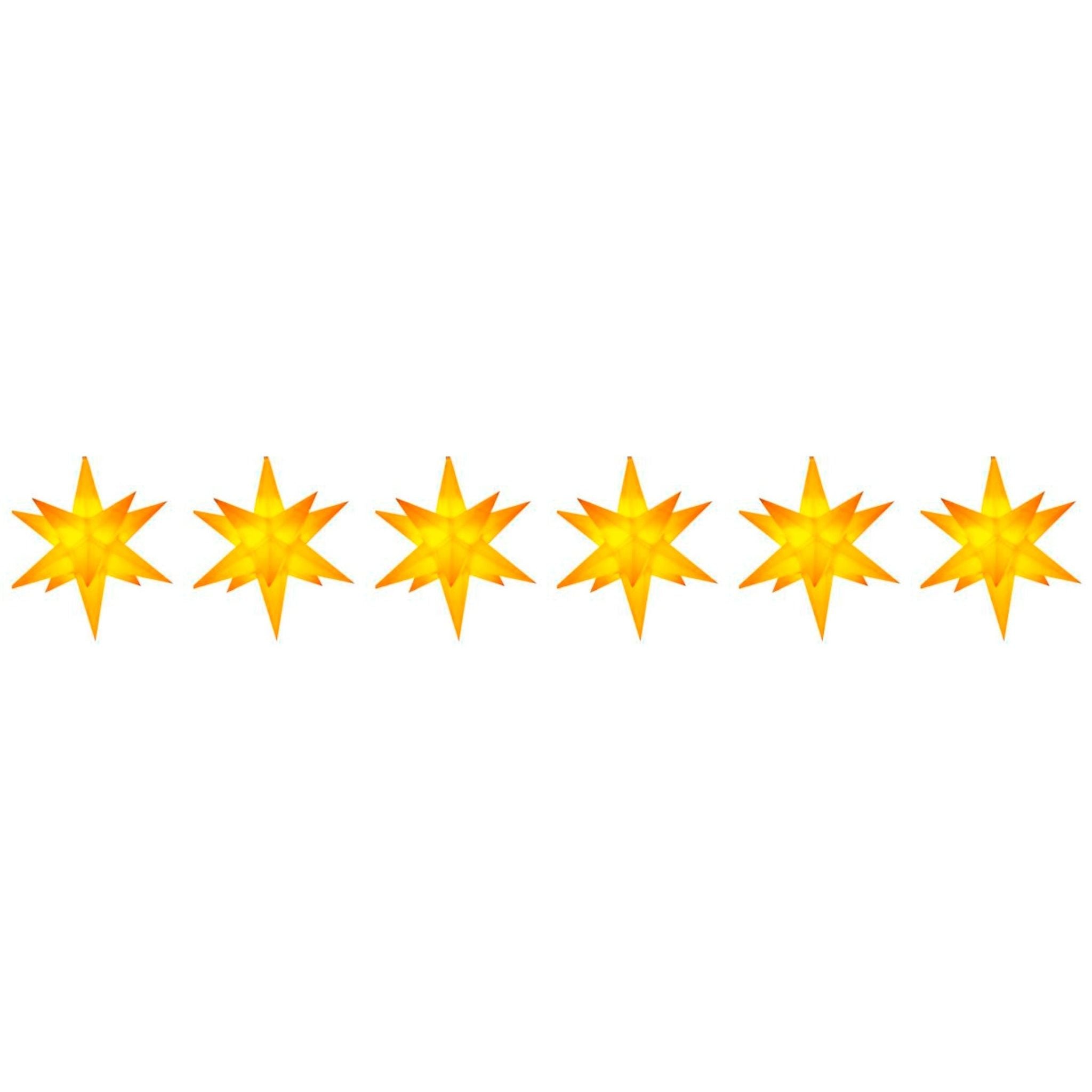 Opulent and simply romantic: the illuminated light chain with Advent stars are on trend. Our fairy lights with 10 plastic stars in red, white or yellow are a truly magnificent Christmas decoration. Each individual Advent star has 14 tips and a diameter of 12 centimeters. If the tree is big enough, it can even be decorated with this star chain. The highlight? Thanks to the robust material, the plastic fairy lights are also suitable for outdoor use. The product is powered by a power cord, so access to a power outlet is required. Of course, the product is TÜV tested and certified. The LED lighting is energy-saving and therefore more environmentally friendly and is included in the scope of delivery. The light chain come to your home packaged in a decorative box (gift tip!!).
