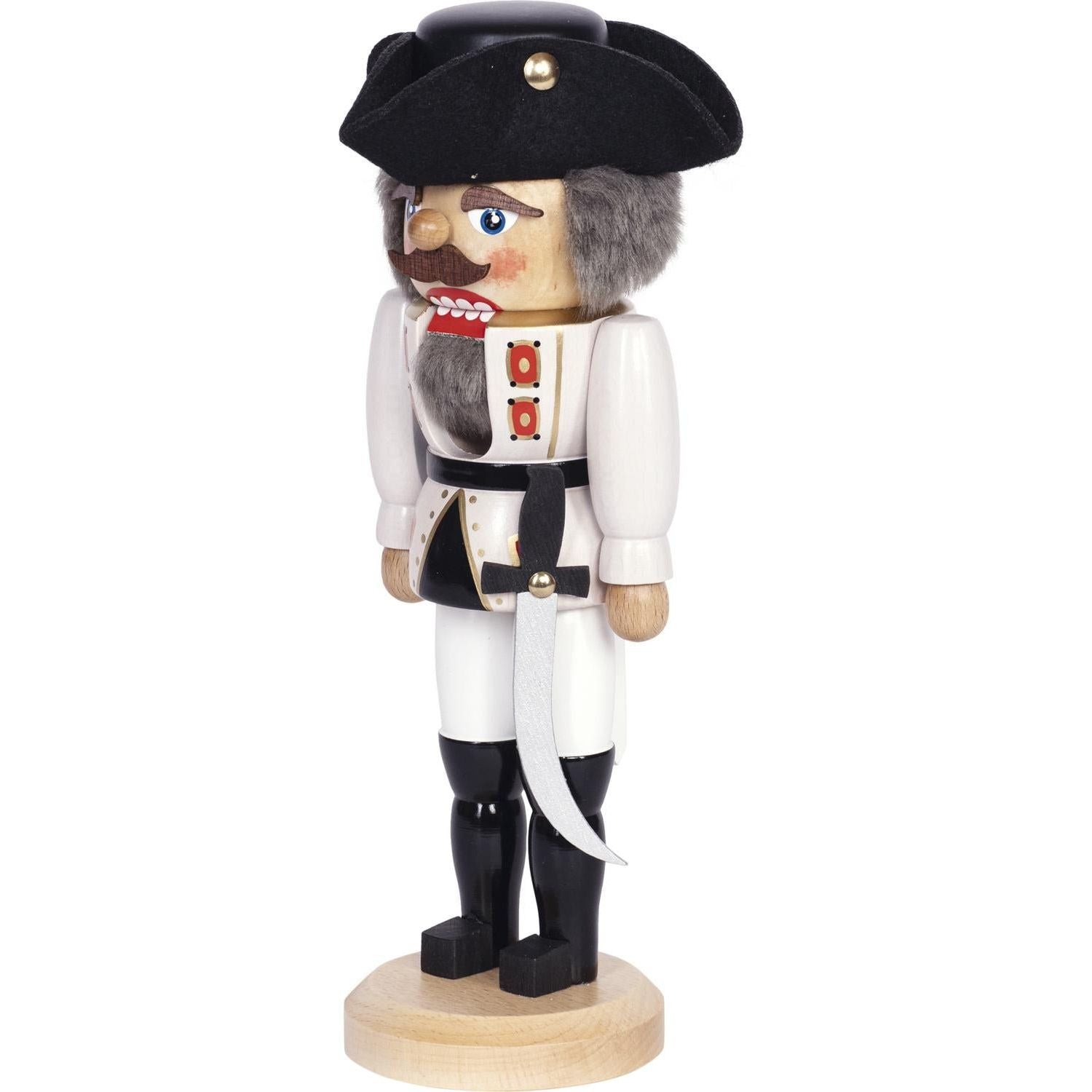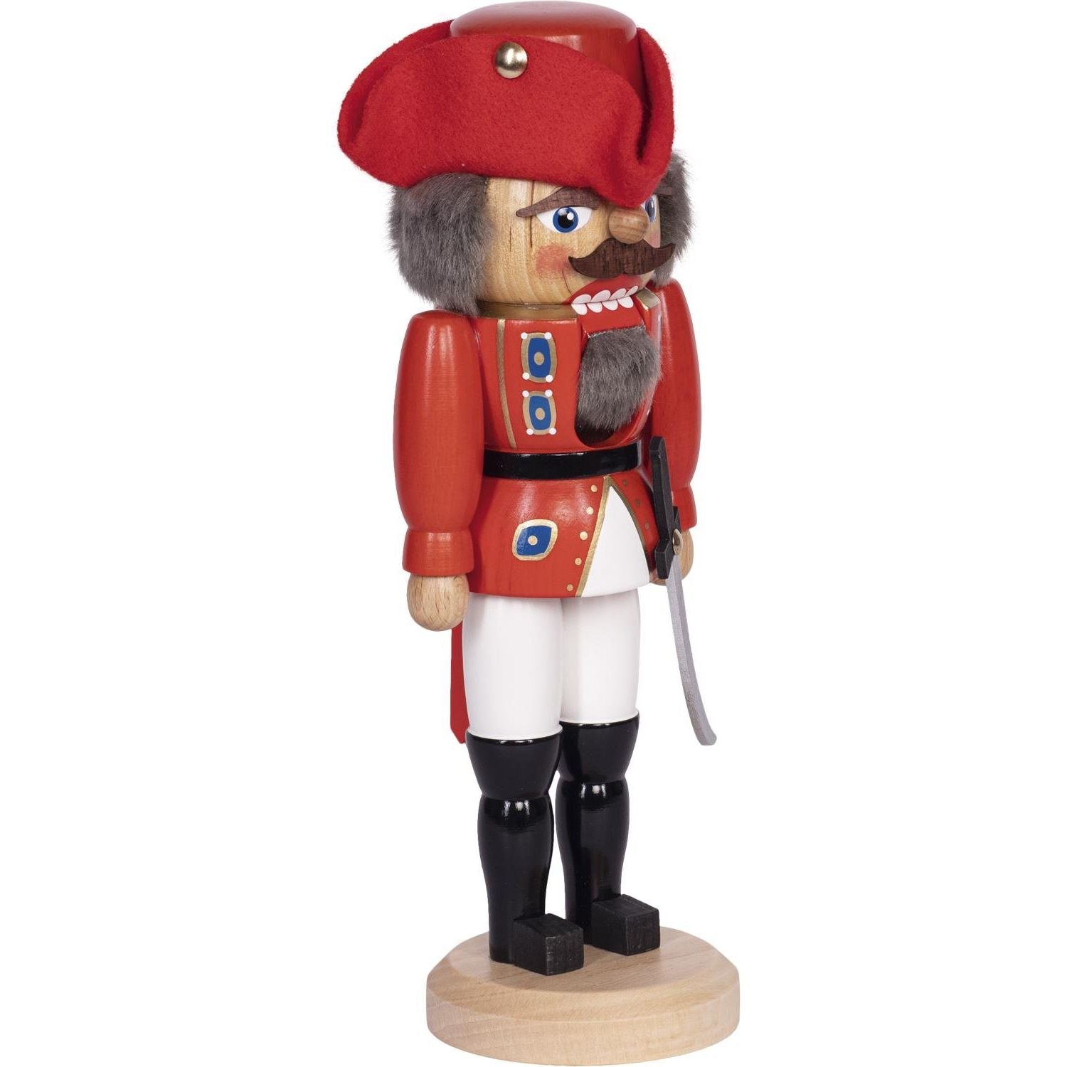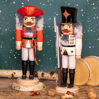 The Nutcracker "General" is one of the classic Christmas characters. With his French hat and curved saber, he makes a distinguished impression. It is an integral part for all lovers of the traditional German Christmas. It is manufactured in an artisan factory in the Erzgebirge. The individual parts, turned from high-quality wood, are painted and then glued together. The decorations and the face of the figure are carefully applied. We offer the nutcracker in the traditional colors white, red and blue. You also have the choice between a 29 cm and 36 cm version. The nutcracker is not suitable for cracking nuts, but is only used as a Christmas decoration.