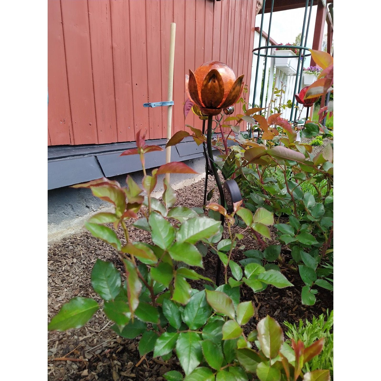 The solar garden stake "Flower" with integrated LED solar lighting is a must for every garden lover. Beautify green spaces, balconies and terraces at any time of the year. The garden stakes in an artistic flower design create small, mysterious oases of light. The weather-resistant mix of metal and glass looks elegant and stylish. The garden stake is available in red, yellow, orange and blue. An integrated solar battery makes it possible to use it without an external power source. Simply plug it into the garden, planter or balcony pot, switch it on and you're done. The diameter of the flower is about 10 centimeters.