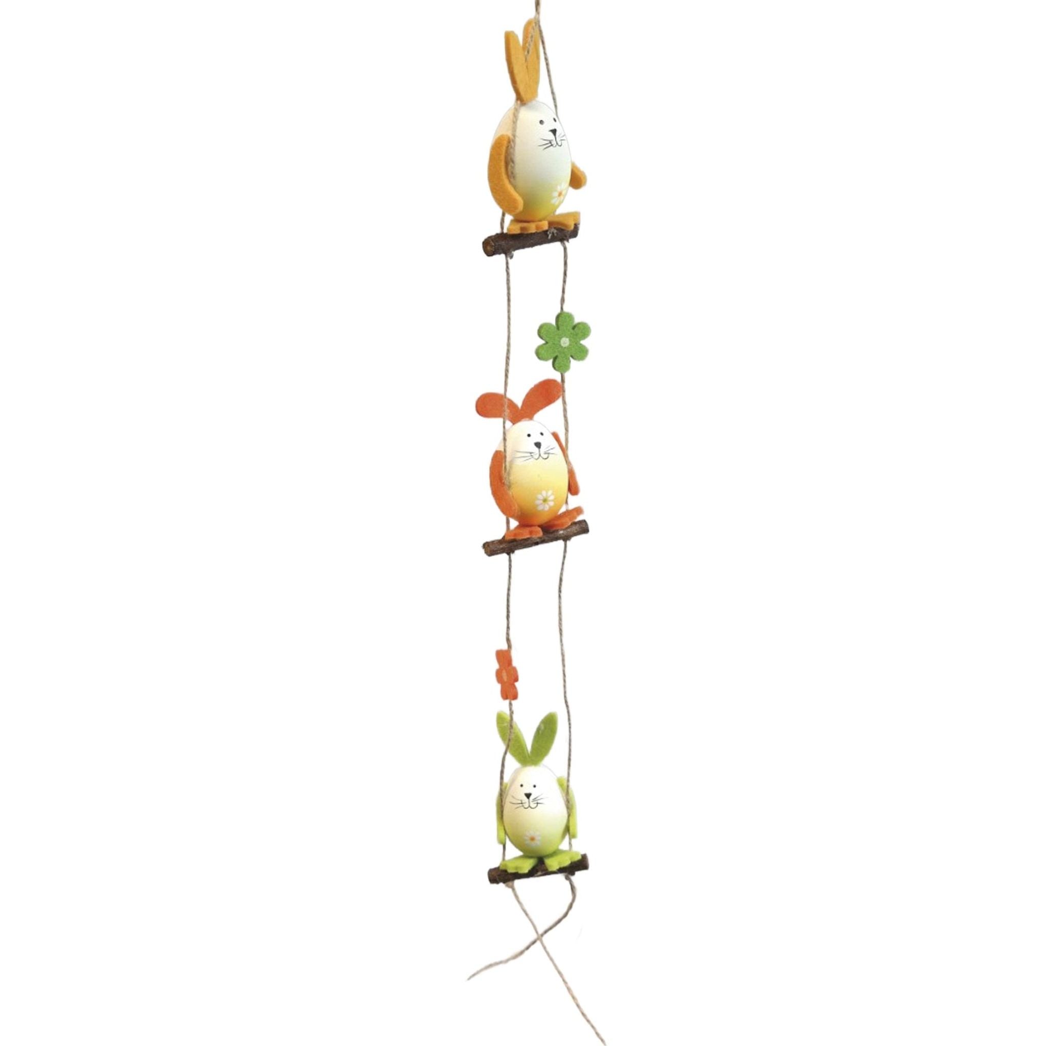 Jedes Ei zeigt einen niedlichen Hasen, der mit seinen bunten Farben und fröhlichen Details begeistert. Die Girlande hat eine Gesamtlänge von 49 cm und lässt sich leicht an Türen, Wänden oder Fenstern befestigen.