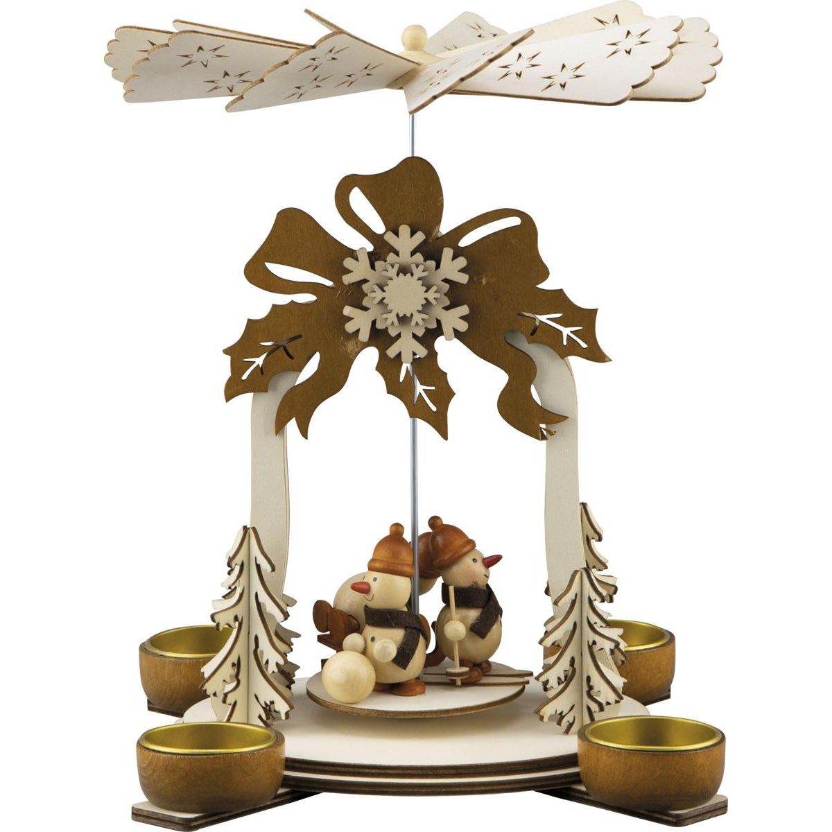 Mit Kerzen oder elektrischer Beleuchtung sorgen sie für Licht, Wärme und Besinnlichkeit. Ihr Ursprung liegt in der erzgebirgischen Handwerkskunst und der Tradition des Bergbaus. Das Flügelrad wird durch aufsteigende Wärme angetrieben und setzt die Ebenen in Bewegung. Gefertigt aus Holz, sind sie in vielen Größen und Designs erhältlich – von schlicht bis kunstvoll.