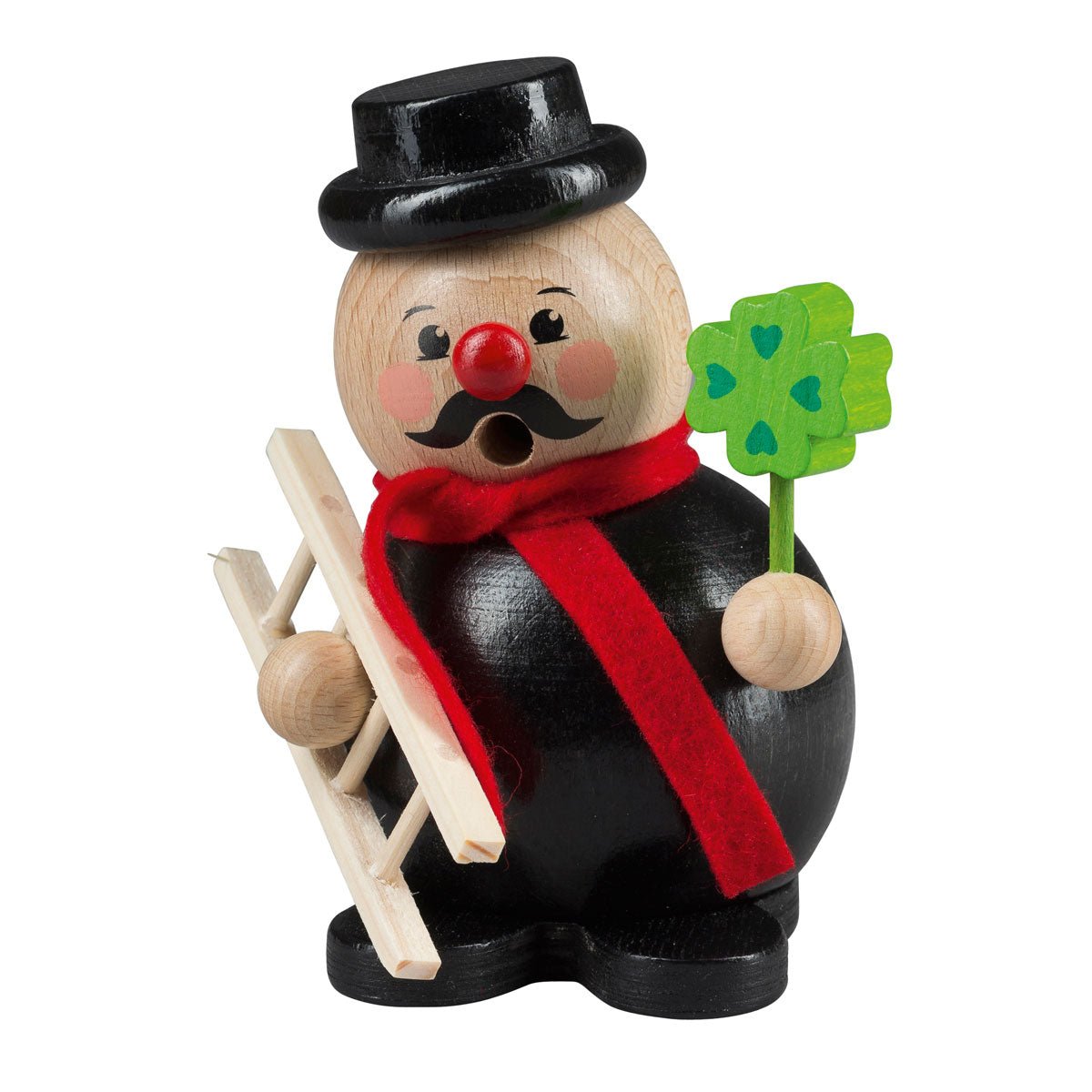 Have you ever given away such a funny lucky charm as a incense smoker? At Christmas or on New Year's Eve - with this little chimney sweep with clover leaf, ladder and scarf made of real felt - you will bring real joy. This means you are giving away a piece of the 'Erzgebirge' at a low price. The ideal, small but loving gift. Of course, it is also ideal for expanding your own collection of incense figures. The little smoker chimney sweep is made up of hand-turned parts and painted in color. Don't forget the mini incense cones, which you can also find in our shop! You can also find other incense smoker and small collectible figures online at a reasonable price.