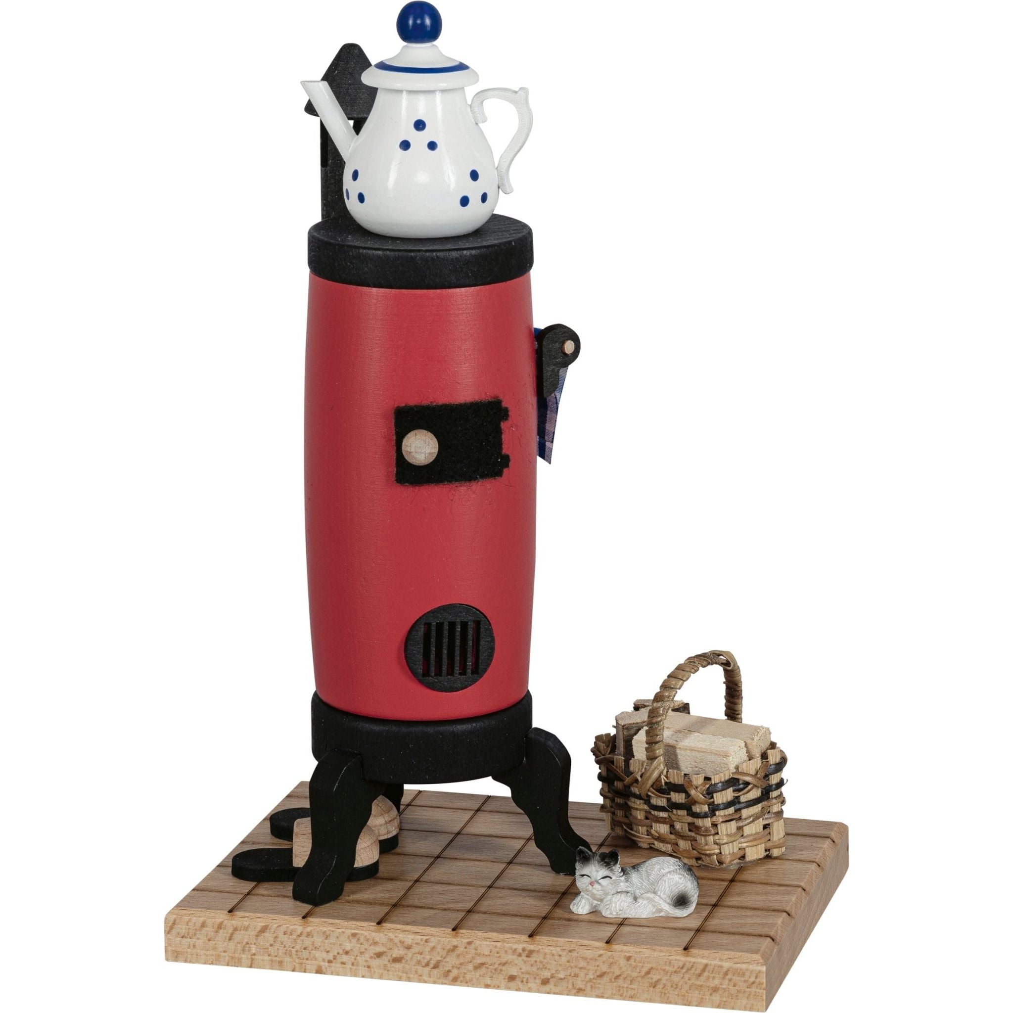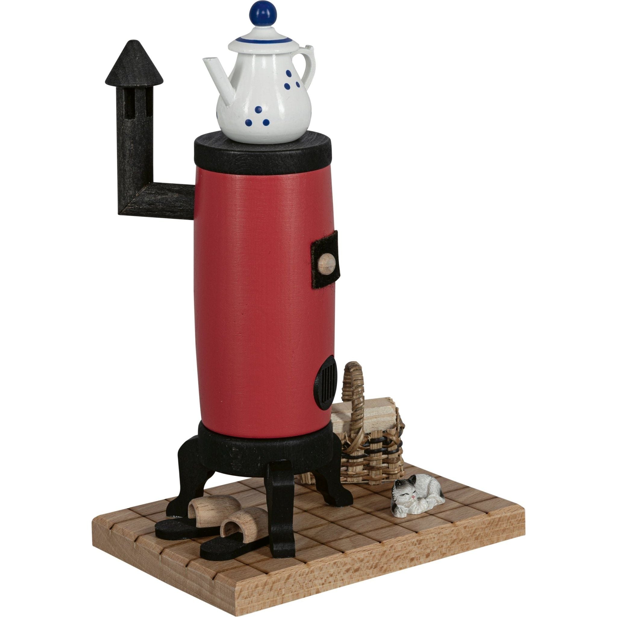 This incense smoker oven is detailed. On the small tables in front of the oven there are miniatures of baking utensils, whether carved bread and rolls, rolling pins or bowls - everything is there. A rustic stove that releases the fragrant smoke/fragrance from the chimney after inserting a lit incense candle. The small “oven” has dimensions of 13 x 13 x 15 cm and therefore fits in many places in your home. Color accents in natural tones underline the authentic character. The smoker oven impresses with its "quality from the Erzgebirge" and is a piece of craftsmanship "Made in Germany".