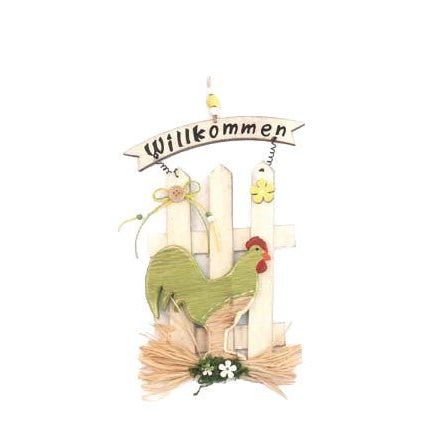 Mit dem Türschild "Willkommen" in zwei Farben und einer Größe von 45 cm heißen Sie Ihre Gäste stilvoll willkommen. Dieses farbige Türschild aus Holz ist nicht nur ein dekoratives Element, sondern auch ein herzlicher Empfang für jeden Besucher. Das Hühner-Motiv passt perfekt zum Frühlingsanfang und zu Ostern, und ist in den Farben Grün oder Gelb erhältlich.
